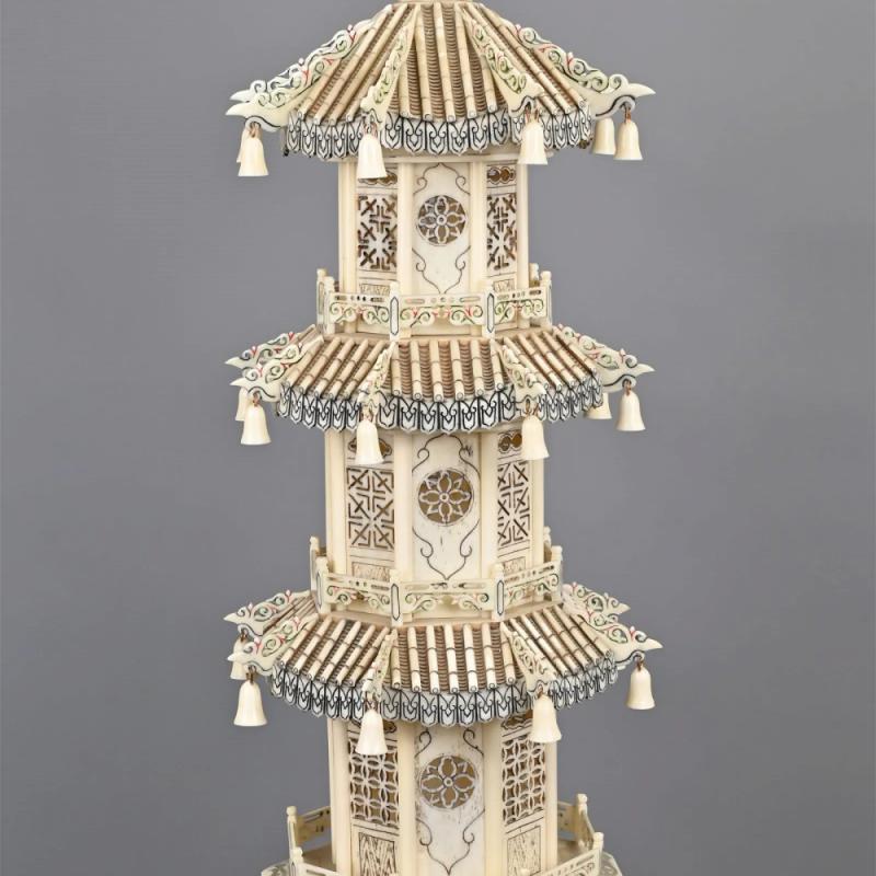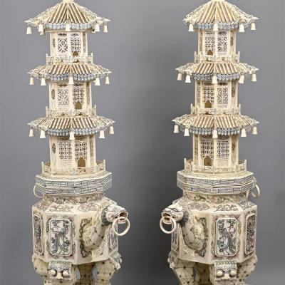 清代 大型牙雕层塔一对