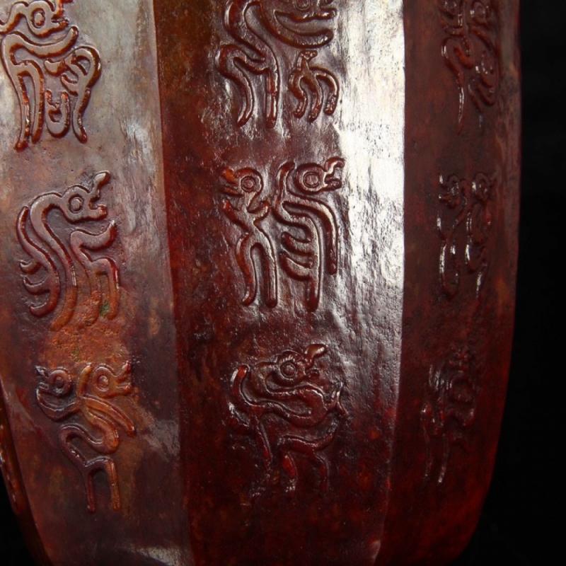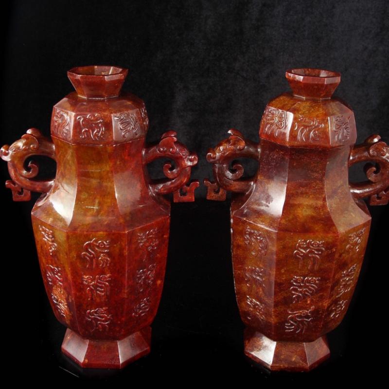 旧藏和田玉雕鸟虫字玉瓶摆件,玉质细腻,包浆油润,雕工精细,线条流畅,细节如图,总重3000克高23厘米宽15厘米厚10厘米