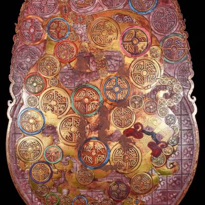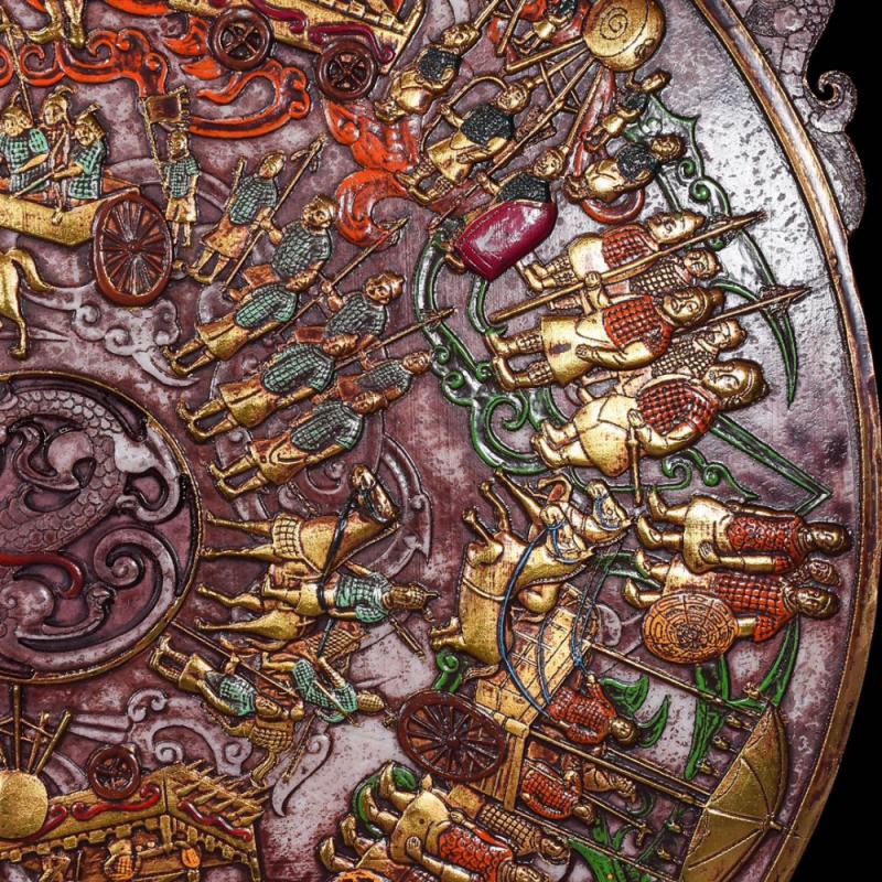 老玉鎏金玉璧,玉质细腻,包浆油润,雕工精细,雕刻栩栩如生,线条流畅,品相完美,细节如图,长82厘米,宽60厘米,厚1厘米,重14kg。