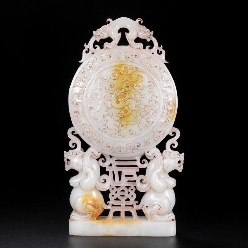旧藏,和田玉长乐摆件,玉质细腻,包浆厚重,雕工精细,细节如图,长13厘米,宽3厘米,高14.5厘米,重1434克