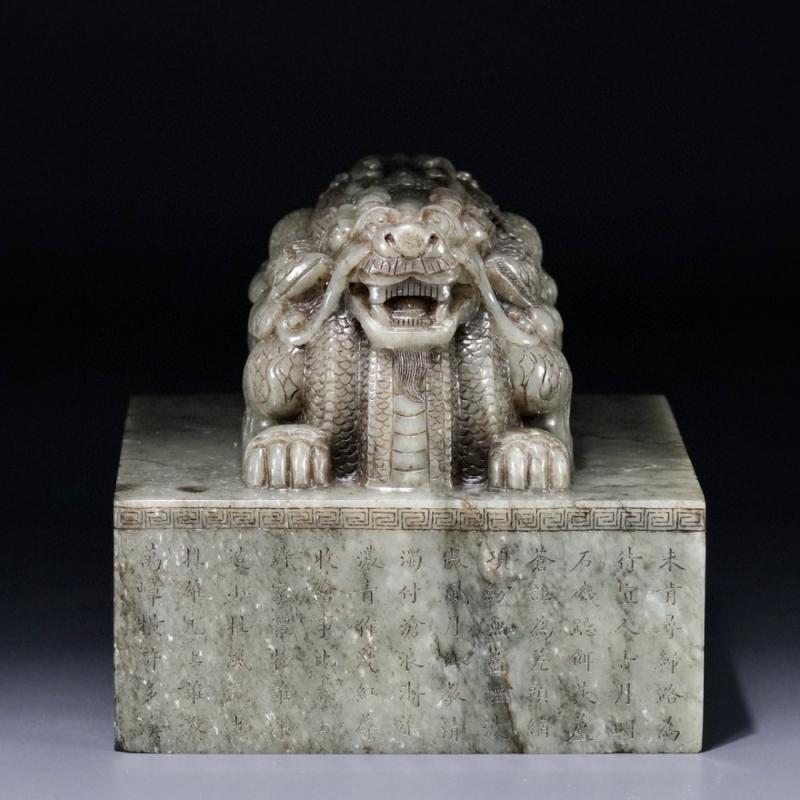 旧藏 和田玉印章,包浆厚重,沁色自然,雕工精细, 高:13.5厘米.长:14.6厘米.宽:14.6厘米.重:5520克.