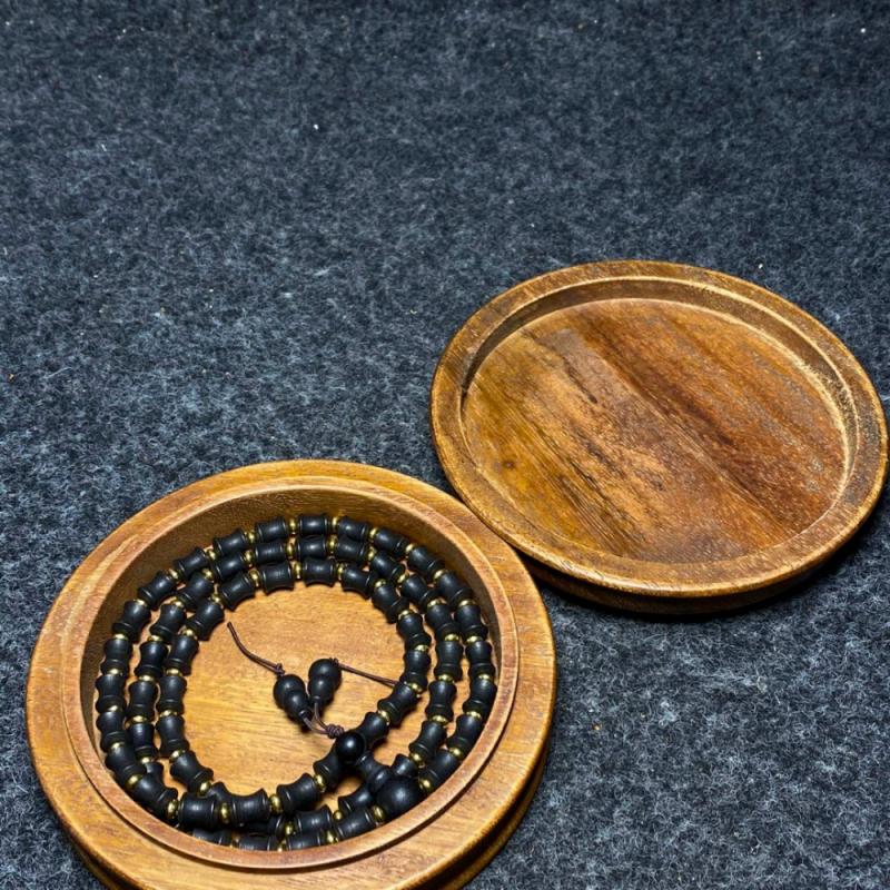 花梨木镶嵌彩贝首饰盒 内放沉香多圈手串 手串尺寸:直径0.8厘米,长44厘米 首饰盒尺寸:长宽高13/13/4.4厘米