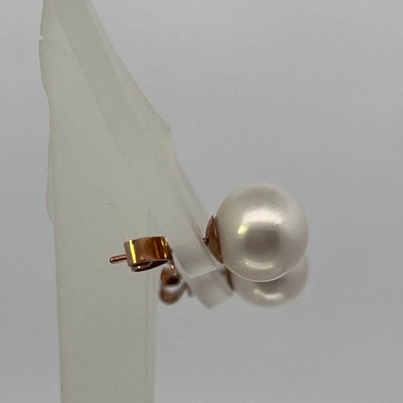 天然澳白珍珠耳钉配9K玫瑰金(3095)