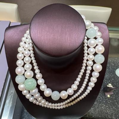 天然淡水珍珠项链配天然水种水翡翠(3151)