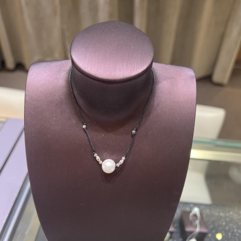 天然淡水珍珠项链配饰18k三色金 珍珠一颗10.2mm 18K白金珠8粒