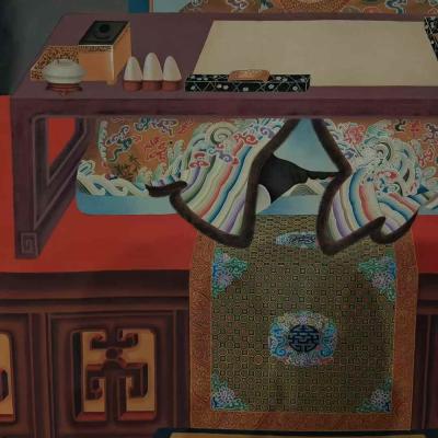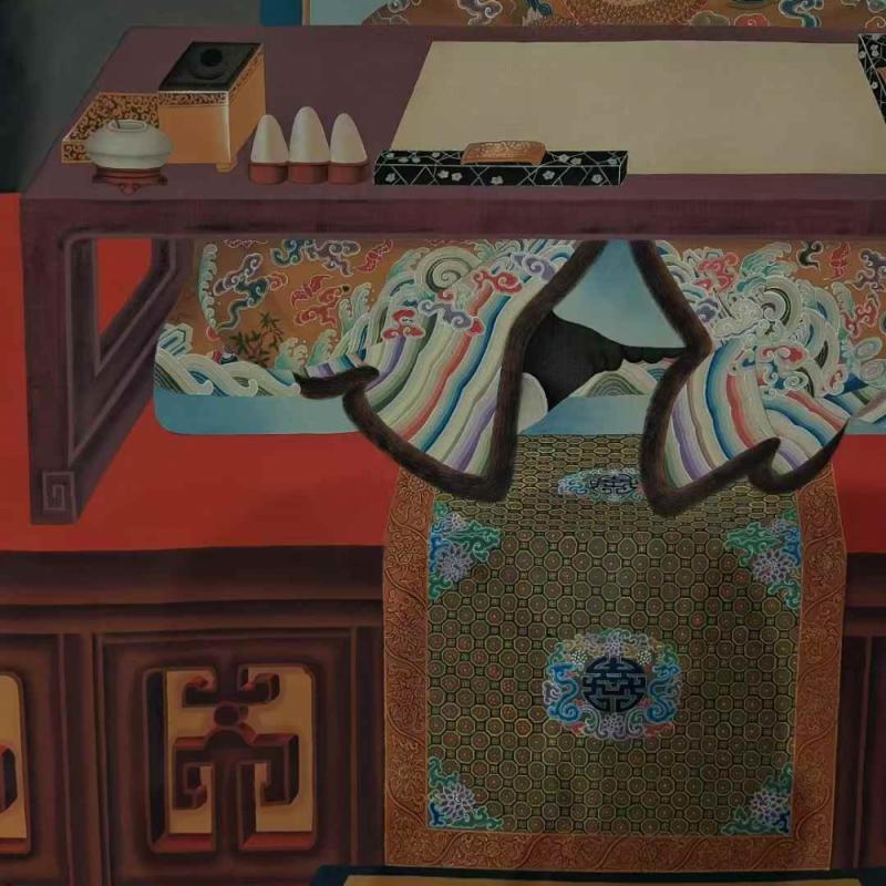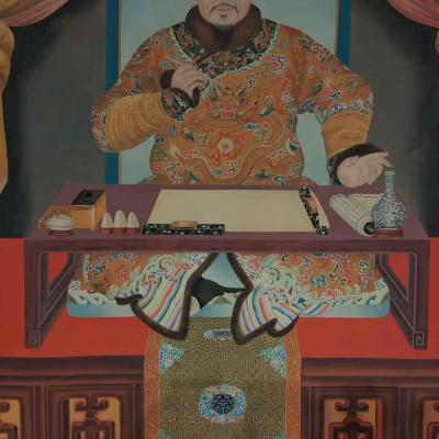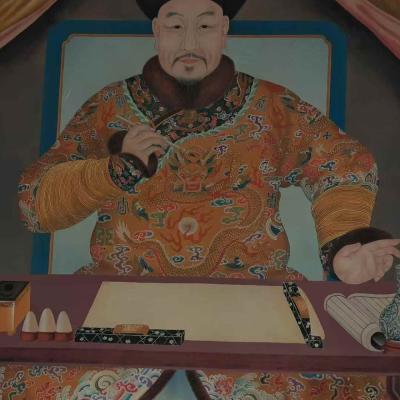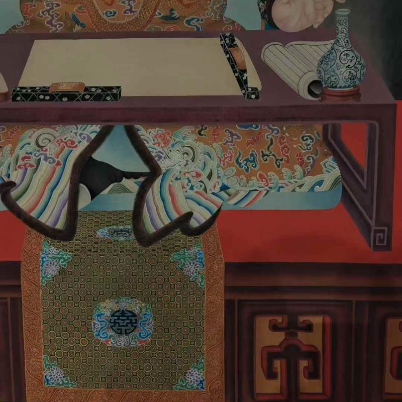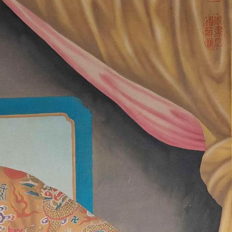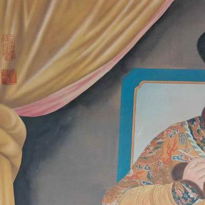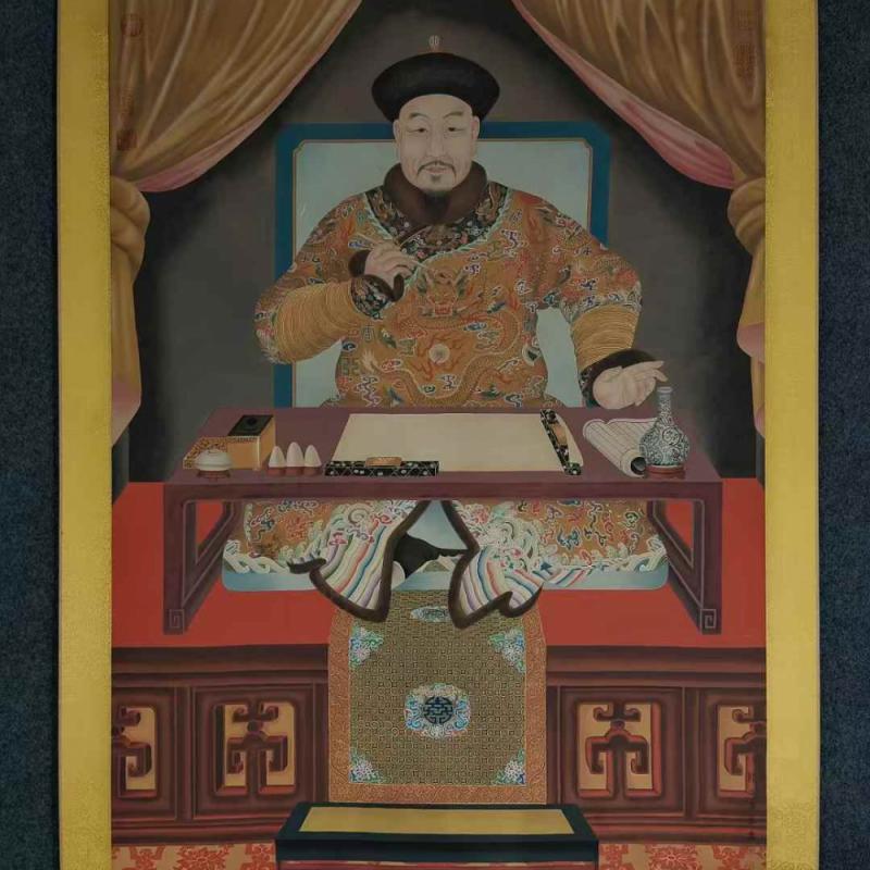 郎世宁画乾隆打坐提笔书画图,郎世宁(1688-1766),意大利画家,清代宫廷画家。尺寸如图