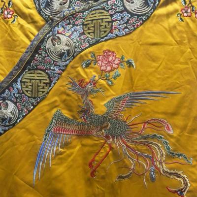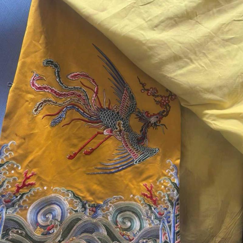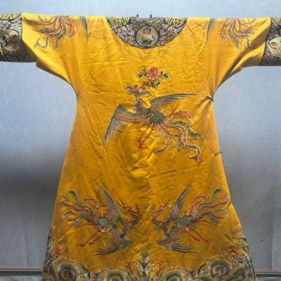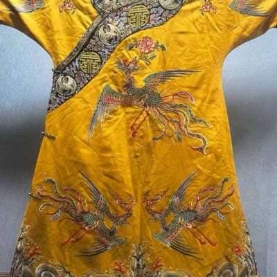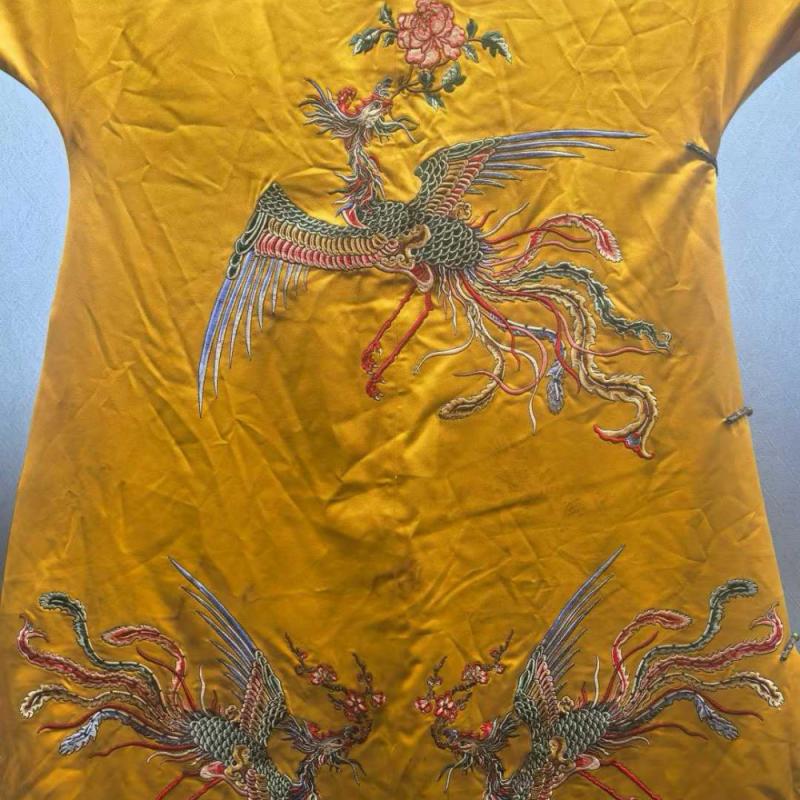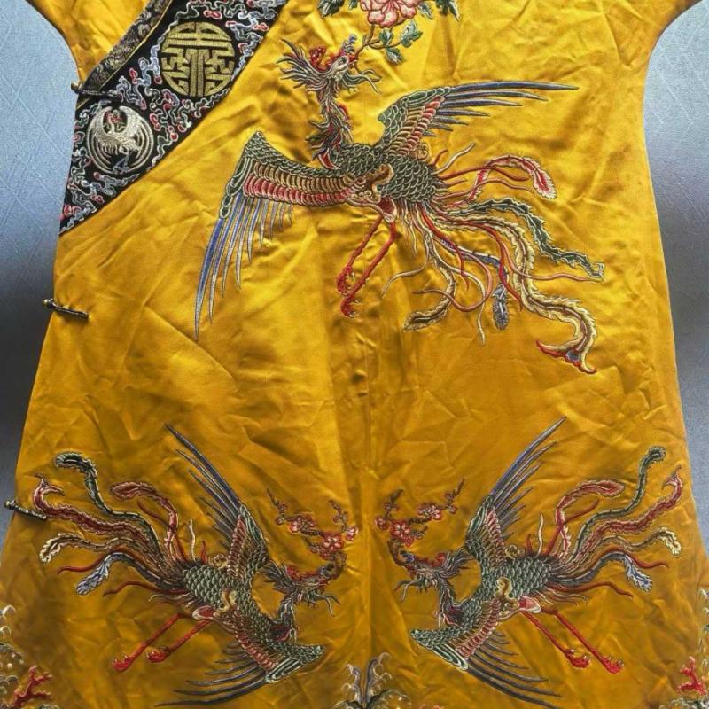 清 九凤袍 ,罕见,工艺精湛,凤凰来仪,凤纹色彩艳丽华贵,应该是清代某皇太后的凤袍,
