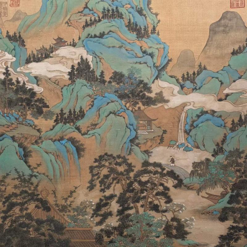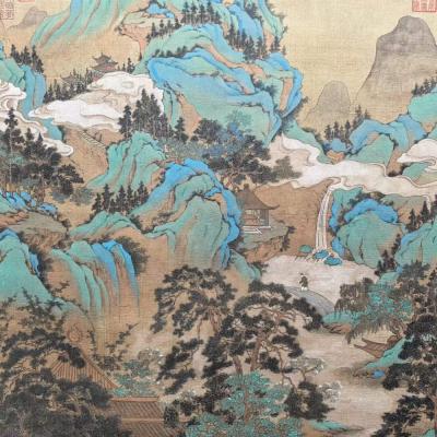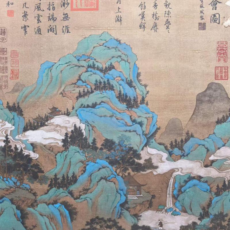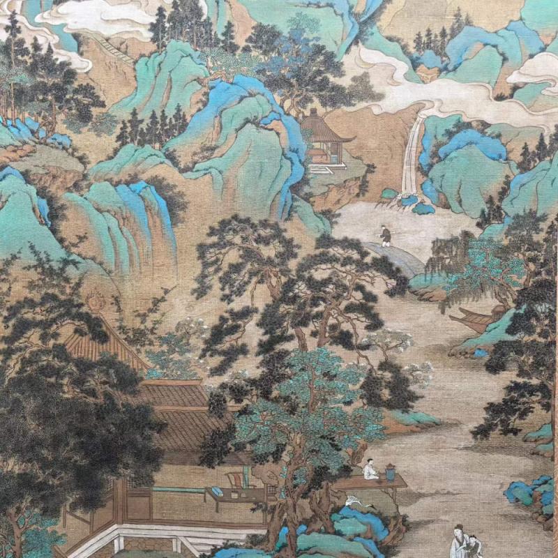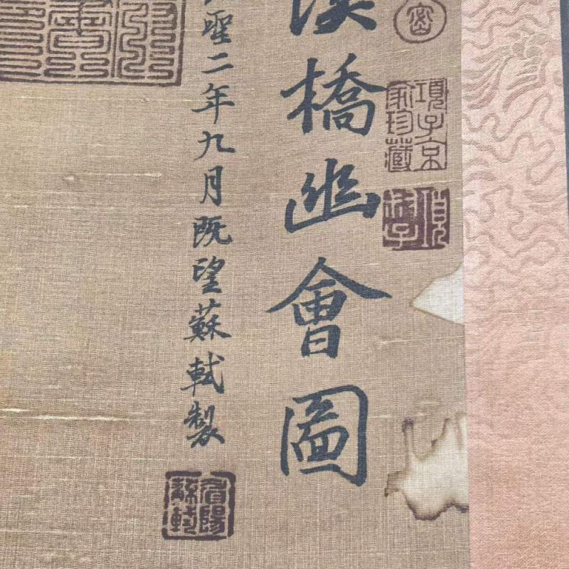 大清三希堂珍藏 苏轼 精品绢本:溪桥幽會图