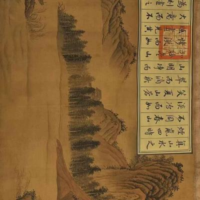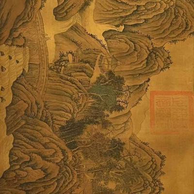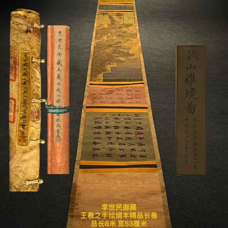 李世民御藏王羲之《秋山雅境图》手绘绢本精品长卷