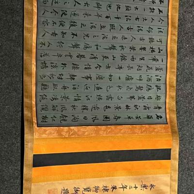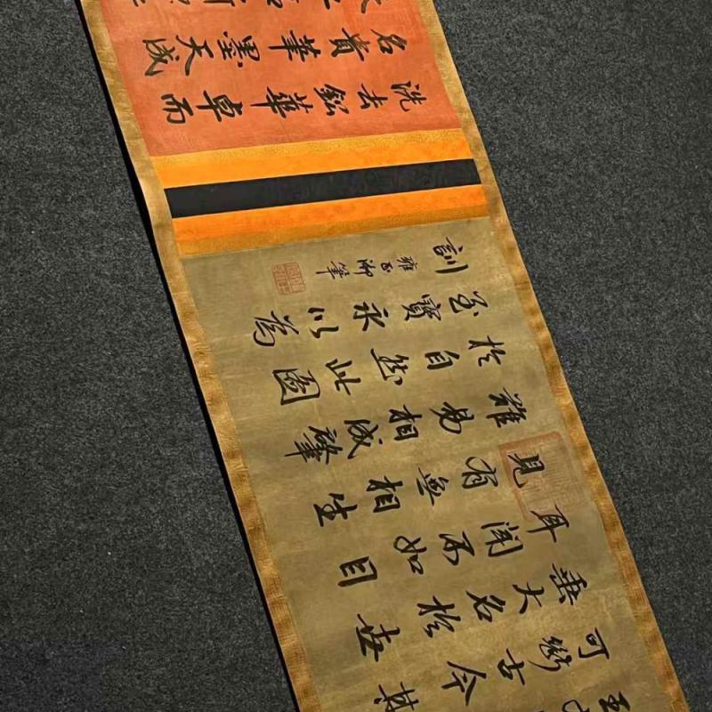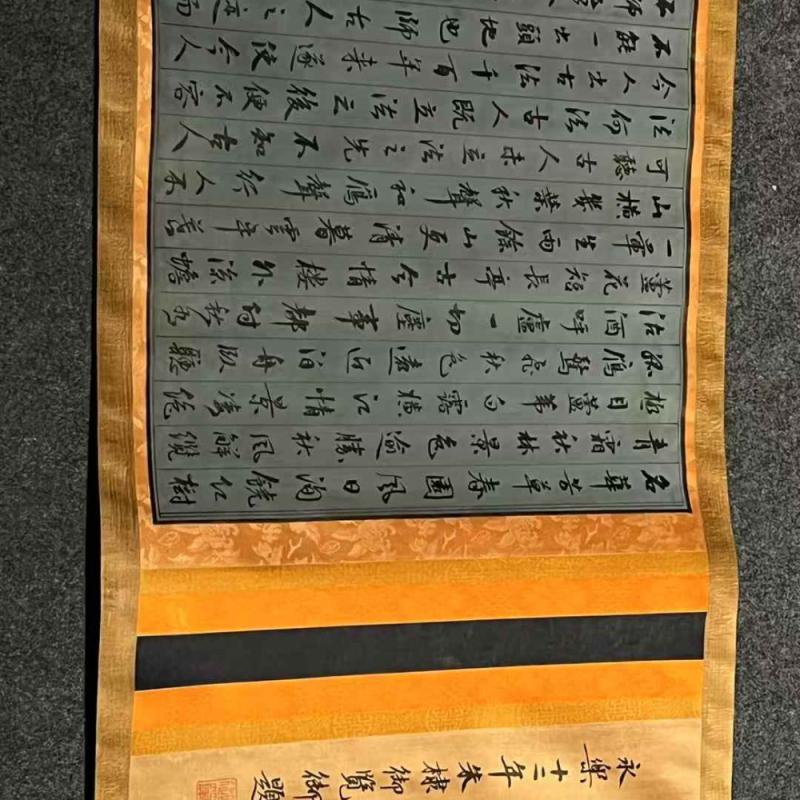 李世民御藏王羲之《秋山雅境图》手绘绢本精品长卷,配原装真丝绣花五爪龙纹锦袋及和田玉扣,保存完好,王羲之之画工精妙绝伦,题诗与各朝代皇帝名人印章,实属世间罕见,尺寸如图。