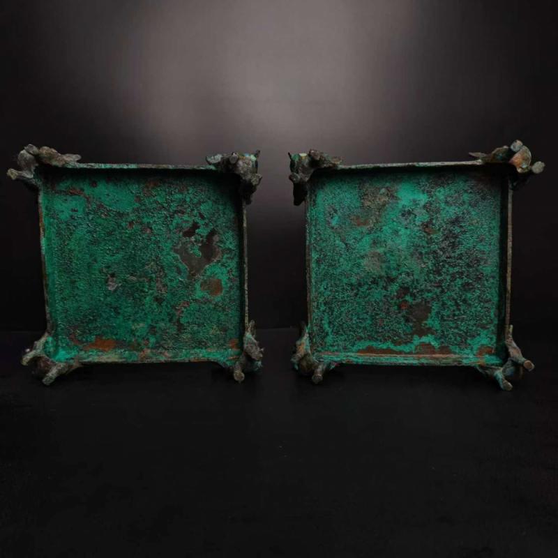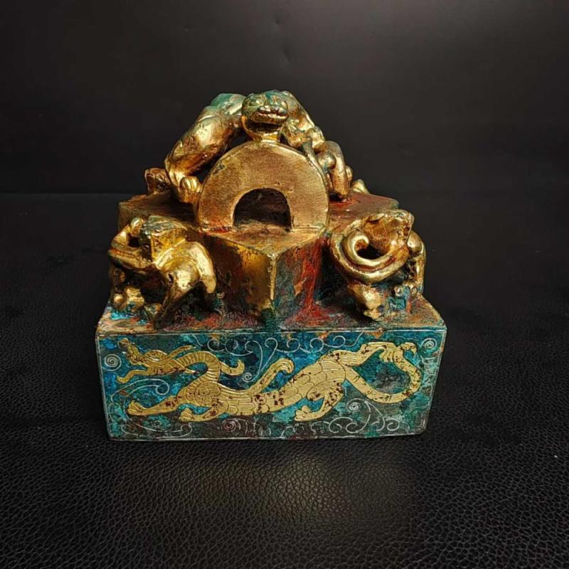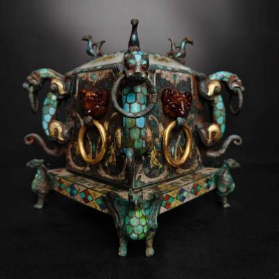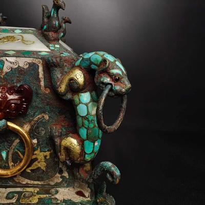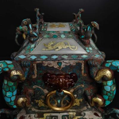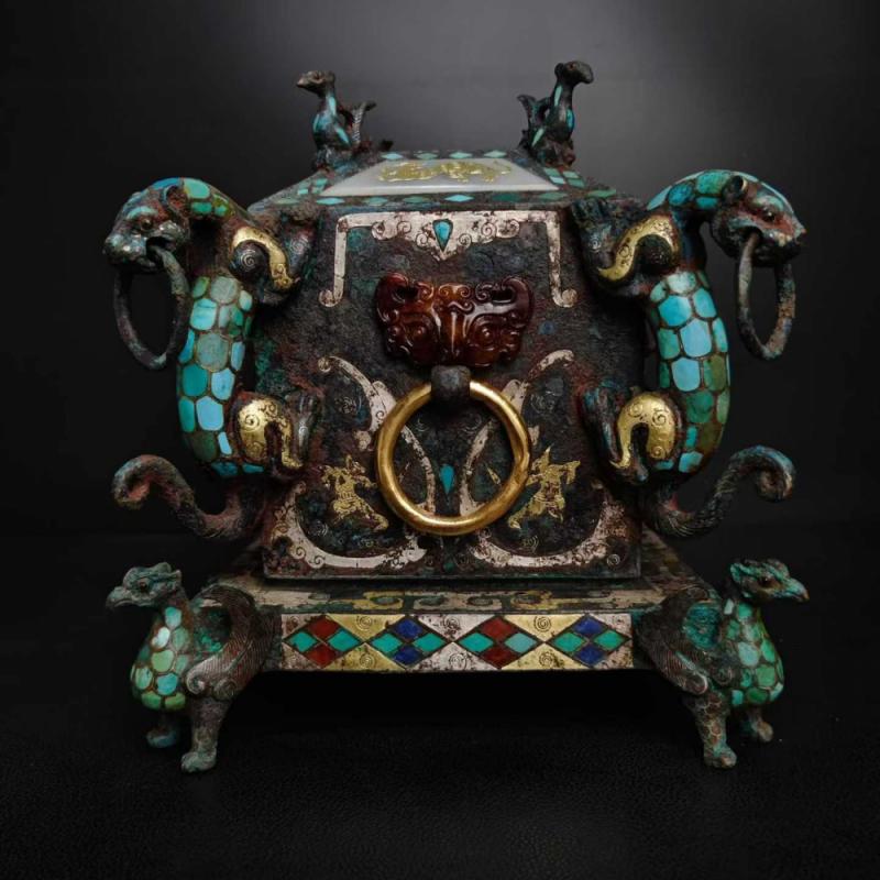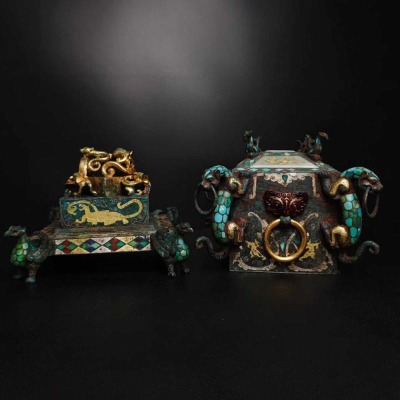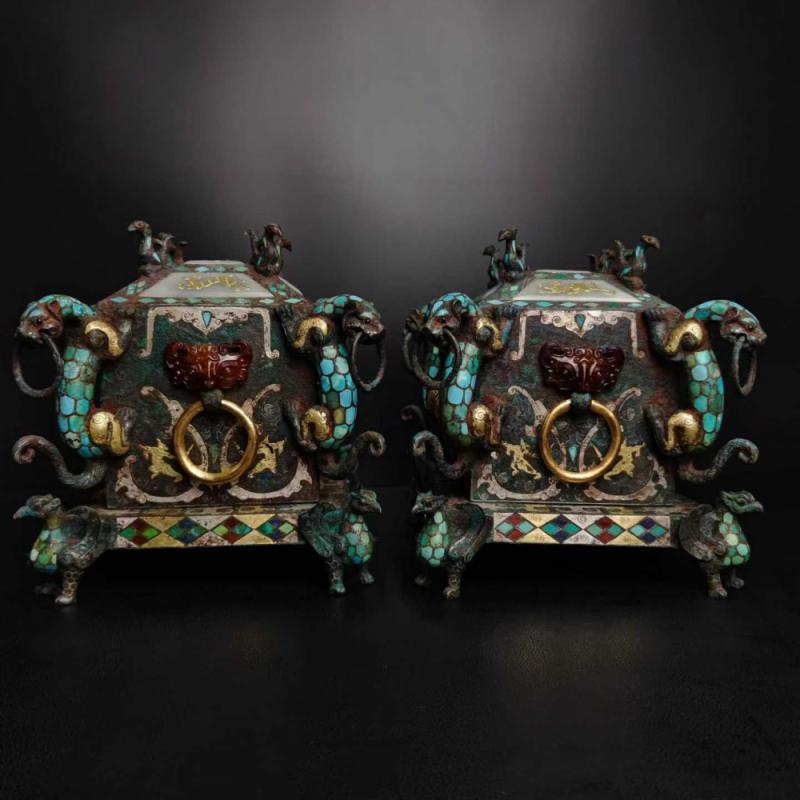 战国青铜错金错银镶玉松石套印一对—— 高:23厘米——宽:21厘米—— 总重:15.8公斤——