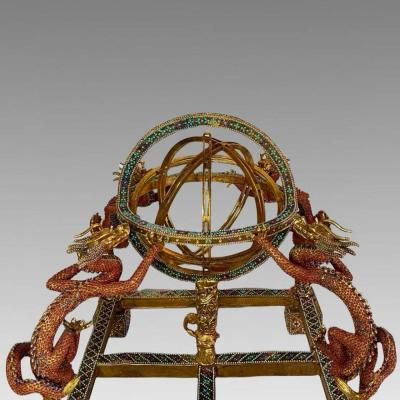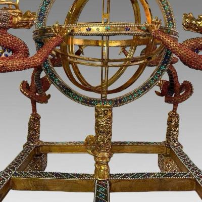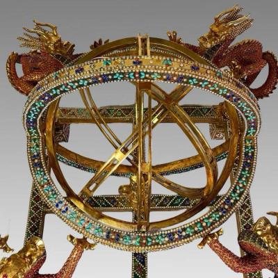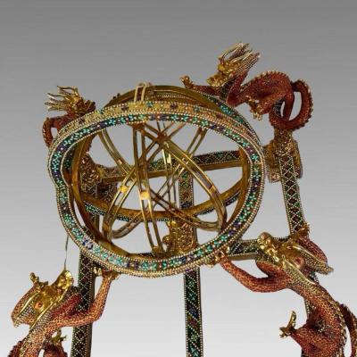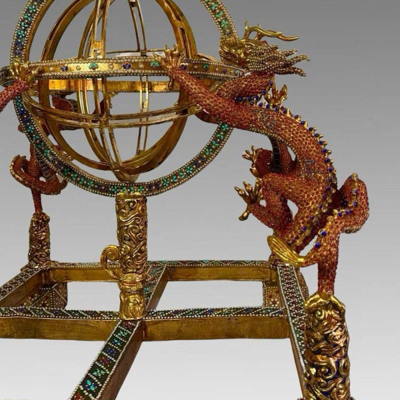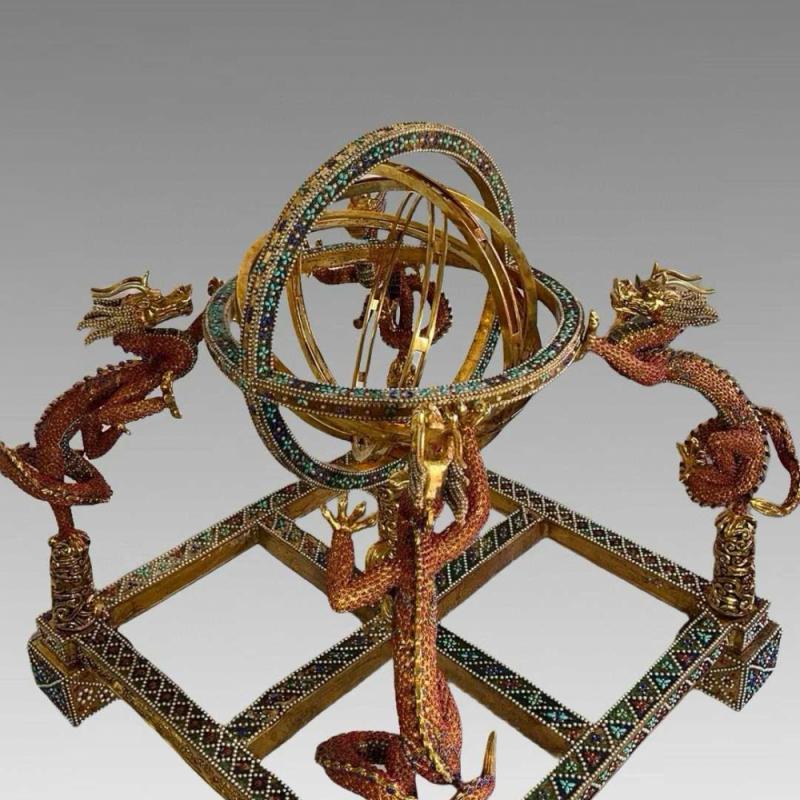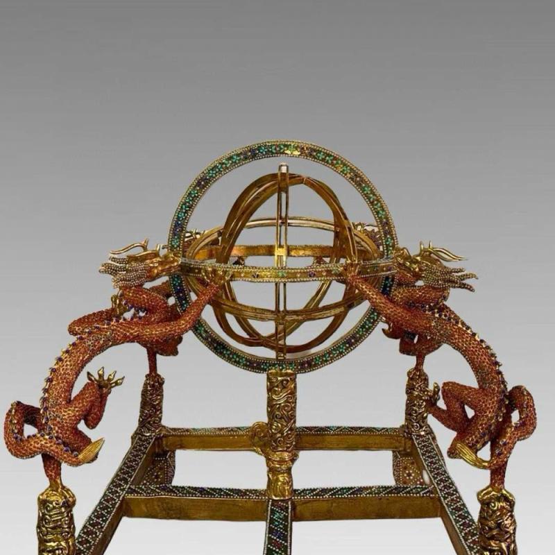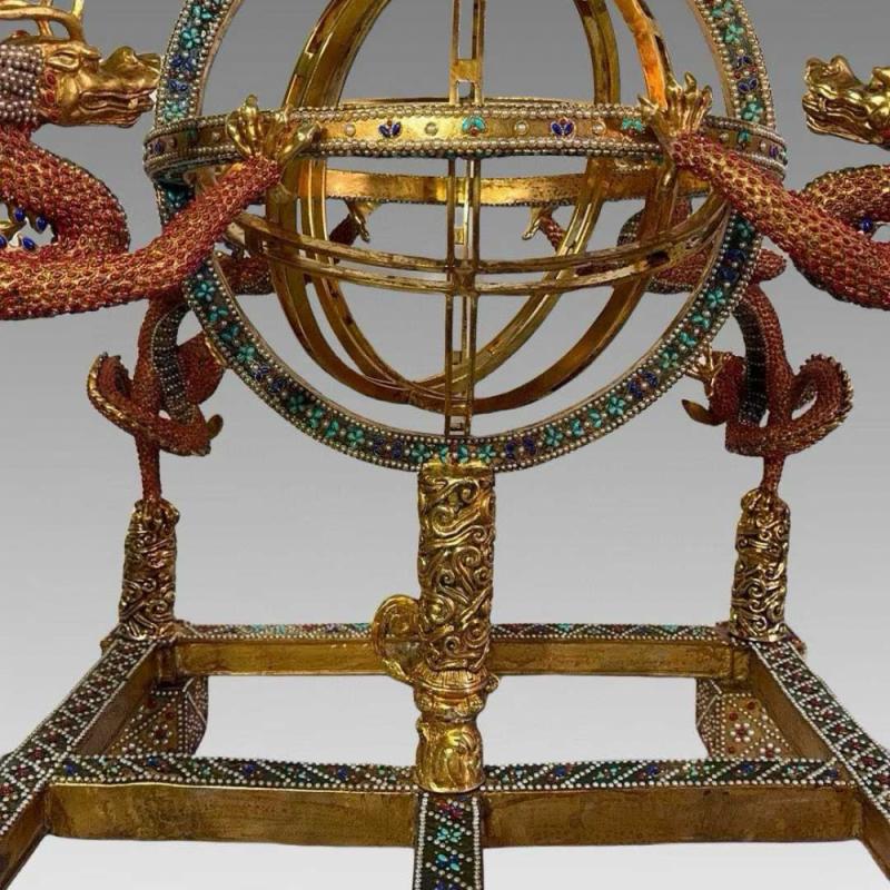 (竞拍)鎏金满镶嵌珍珠 珊瑚 松石 青金石 【浑天仪】