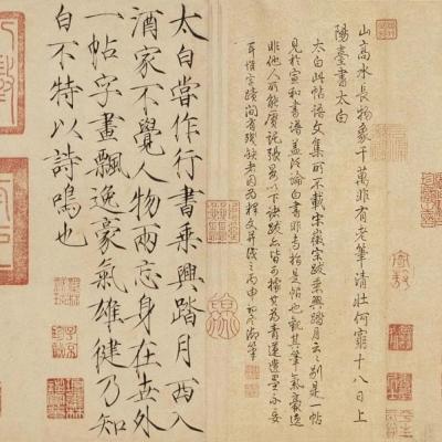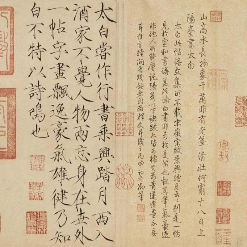 **本拍卖品盖有李白私印和宋徽宗御书私印,还盖有金朝(稽古殿宝印),元代(皇姊图书印)及明代洪武,永乐皇帝之宝大玺印,还有由元代危素太史收藏记录,友石,欧阳玄,张晏等数十名人名家印章及题诗,冷枚画李白像, 乾隆御览之宝,乾隆鑑赏,乾隆御笔宝,石渠定鑑,宝笈重编,古希天子,宜子孙,信天主人,三希堂精鑑玺等等对此件真品作出非常确定真迹无疑的宝玺印及御题诗,嘉庆御览之宝和咸丰之宝等宝玺印,无不表明这拍品《上阳台帖》才是出自李白真正手笔长卷及流传有序,真迹无疑。另加《行路难三首》和《苦寒行》真迹,价值连城,三书法合集估值过100亿也不为过。