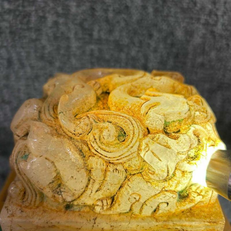 宫藏天然水晶(秦)印章,包浆厚重,龙型威猛,水晶通透,净重约3.5公斤。