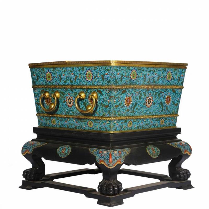 清 铜胎景泰蓝掐丝珐琅冰箱冰鉴