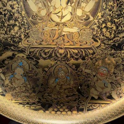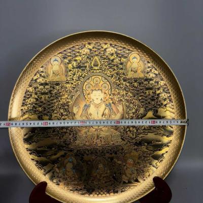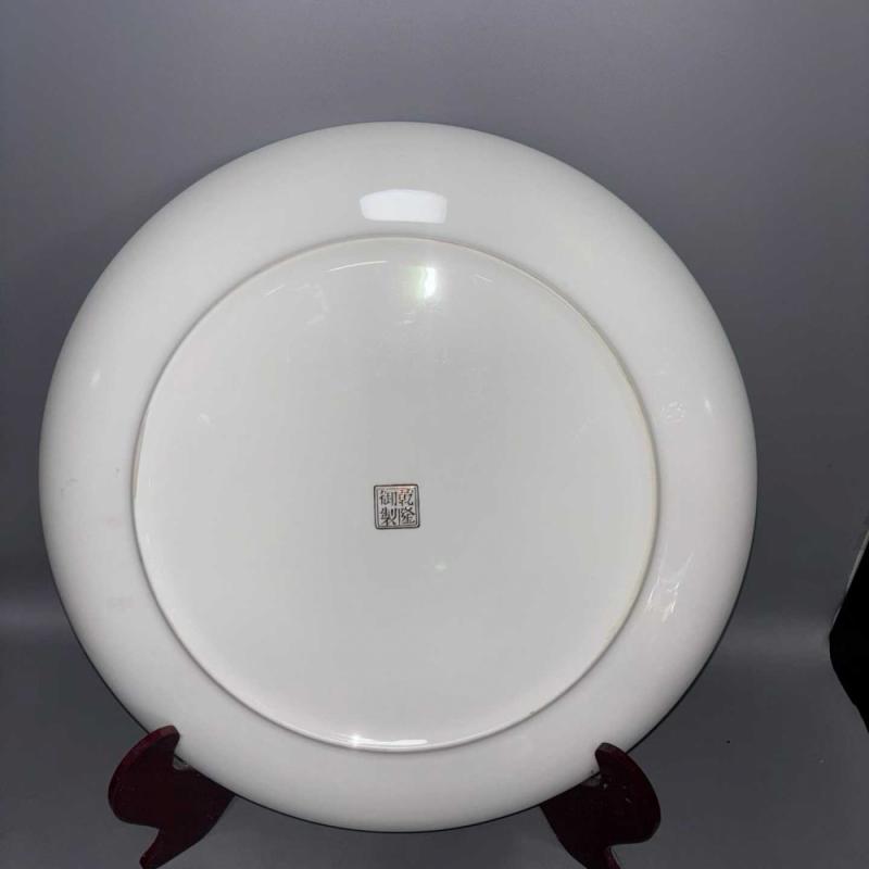 清乾隆御制珐琅彩唐卡盘子,工艺精湛,画工精妙绝伦,色彩丰富艳丽华贵,罕见―对完整,尺寸如图。