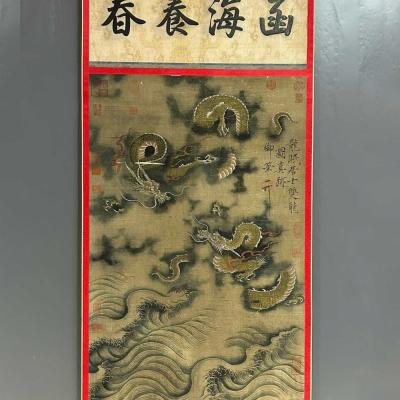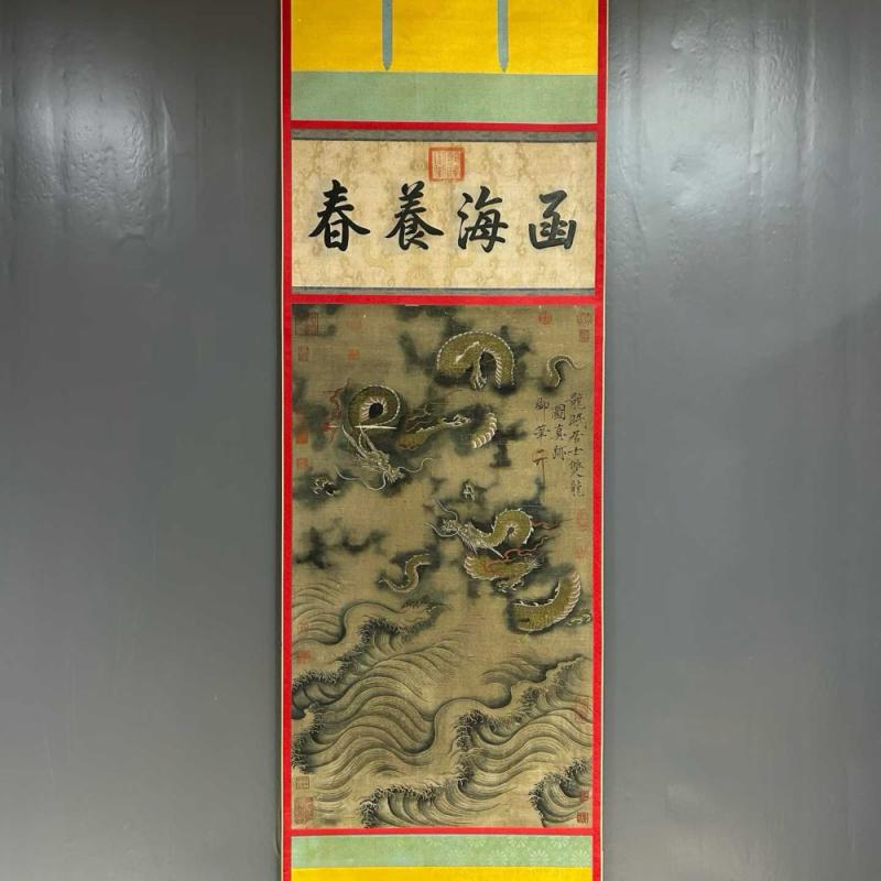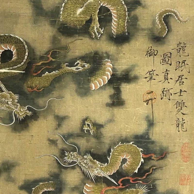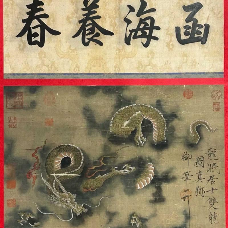旧藏.北宋 李公麟 精品丝绢(双龙图) 画心加祠堂尺寸:61x141厘米。