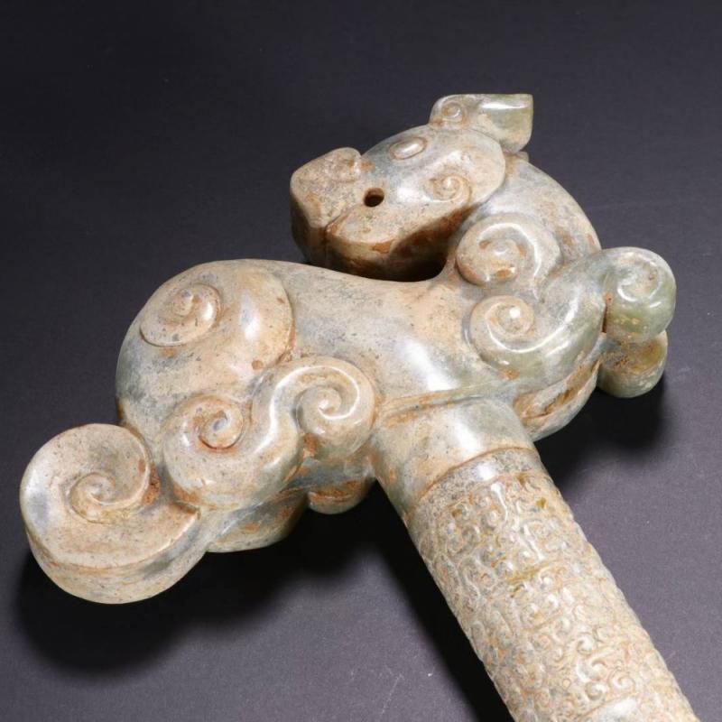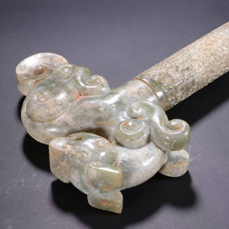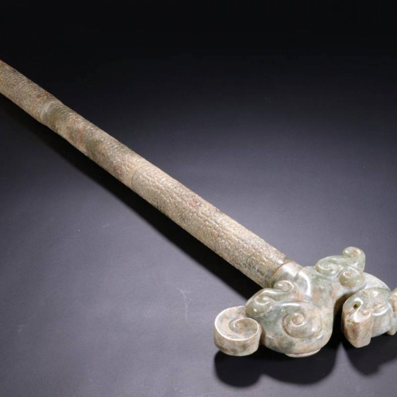 汉 和田玉雕龙头手杖