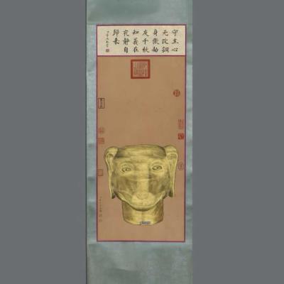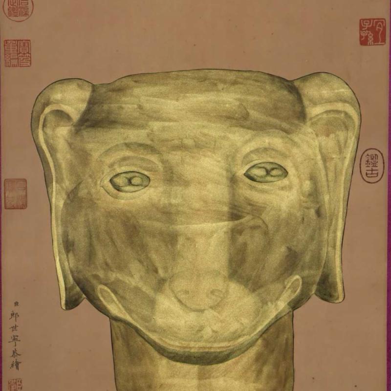 清乾隆年制鎏金十二生肖兽首一套---12 (十二个一套)。郎世宁-精品绢本字画画心尺寸76x36厘米;瓷器尺寸高 :33厘米。 肚径:35厘米。