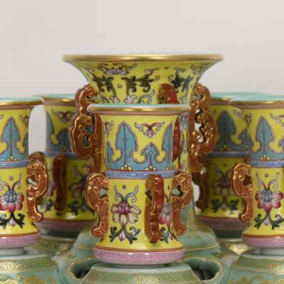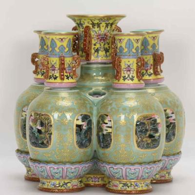 清乾隆,珐琅彩豆青镂空描金六连转心瓶