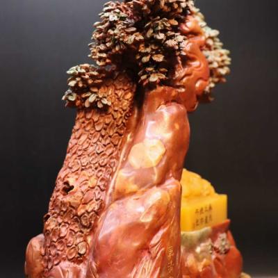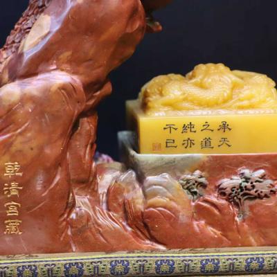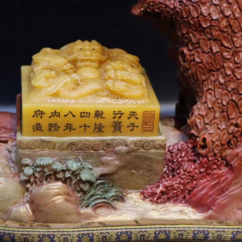 旧藏 鸡油田黄石九盘龙戏珠 乾隆天子行寶 尺寸:印9.2*9.2*5.3cm 树高26*12*30cm 净重:765g树13.8斤