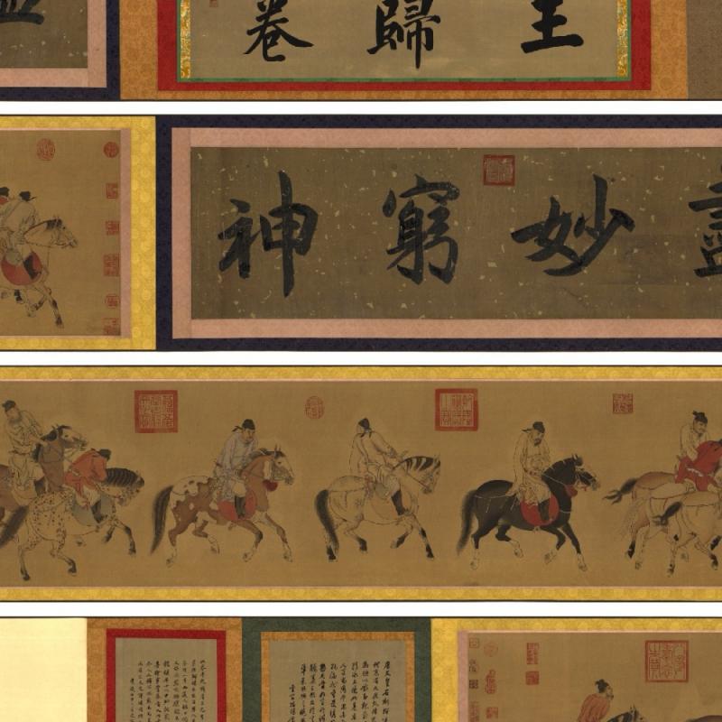 《五王醉归图卷》,元代,任仁发,纸本设色,手卷,画心纵35厘米,横210.5厘米;题跋纵35厘米,横65.5厘米,北京保利2016秋拍3.036亿元成交