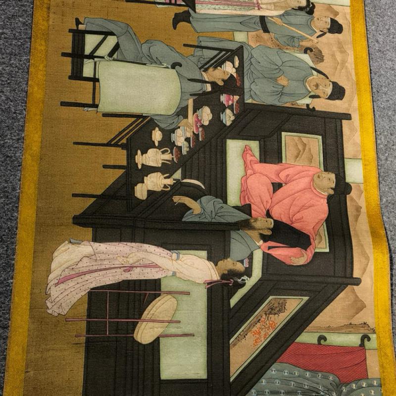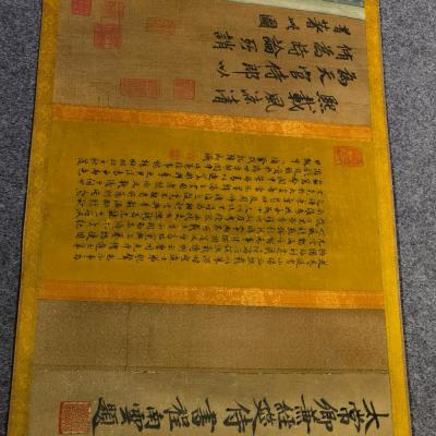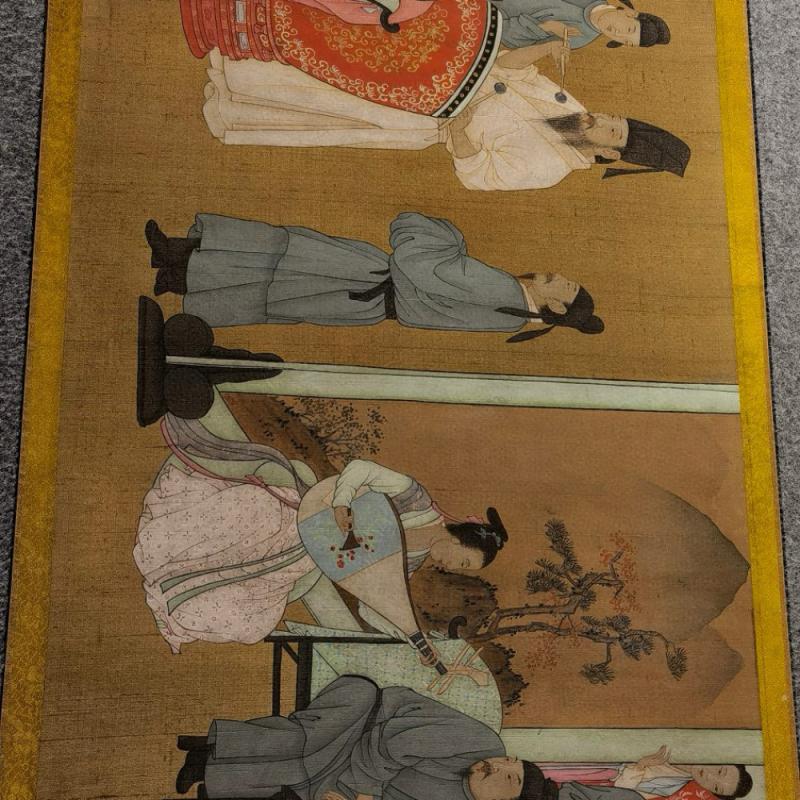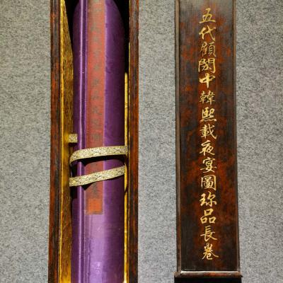 历代著录的顾闳中《韩熙载夜宴图》有数本,此卷据各方面考证,当属南宋孝宗至宁宗朝(1163—1224年)摹本,其风格基本反映出原作面貌,且达到相当高水平,堪称流传有绪的古代绘画珍品。《石渠宝笈•初编》著录。