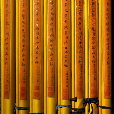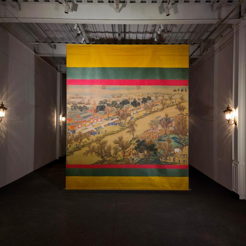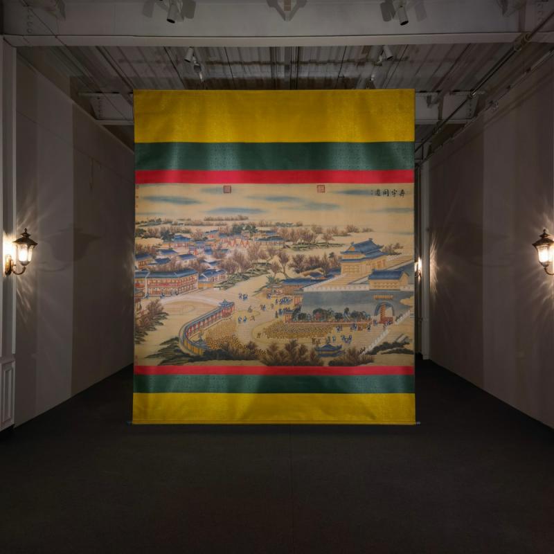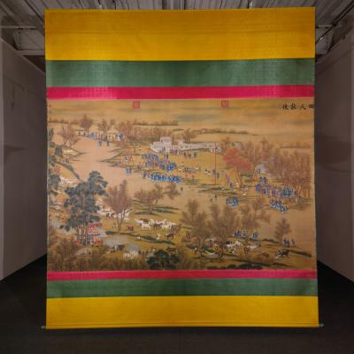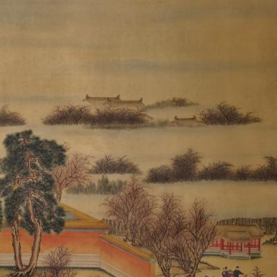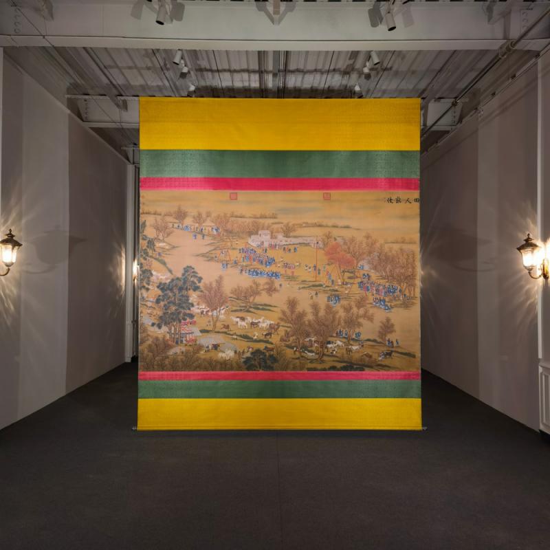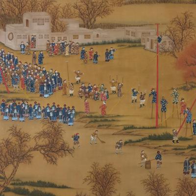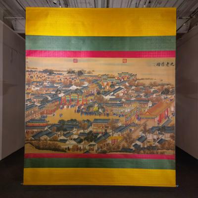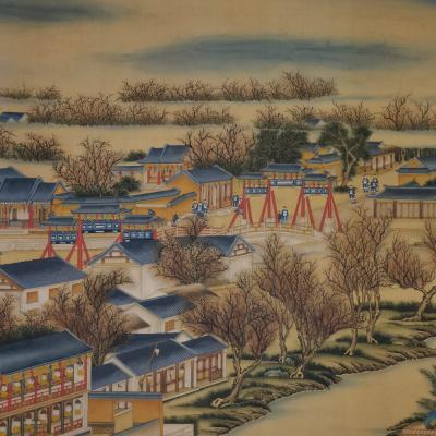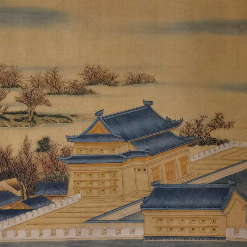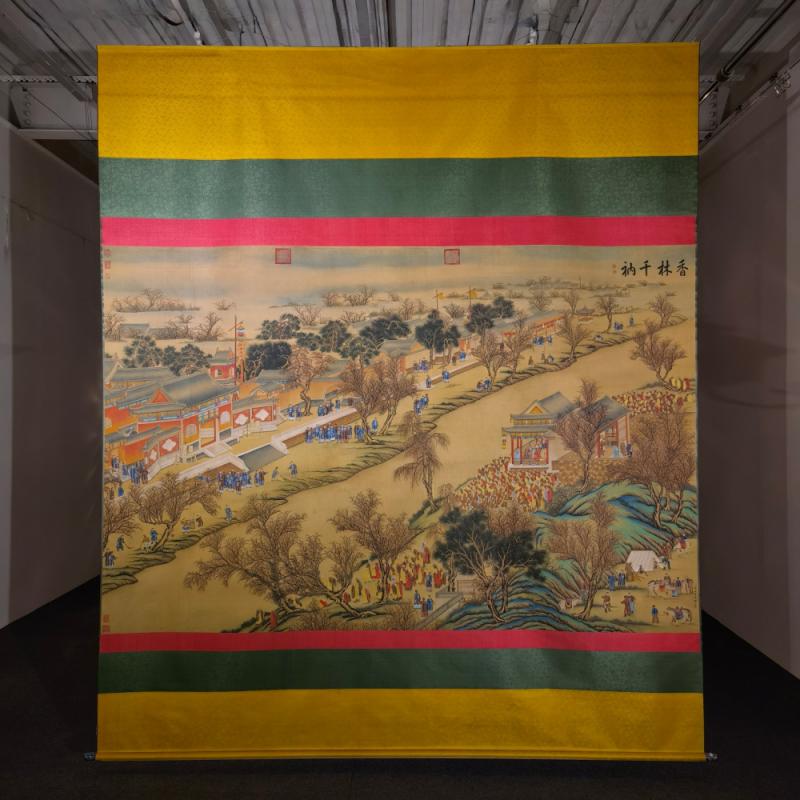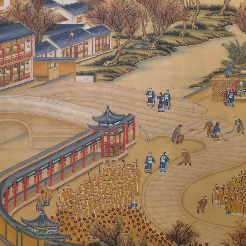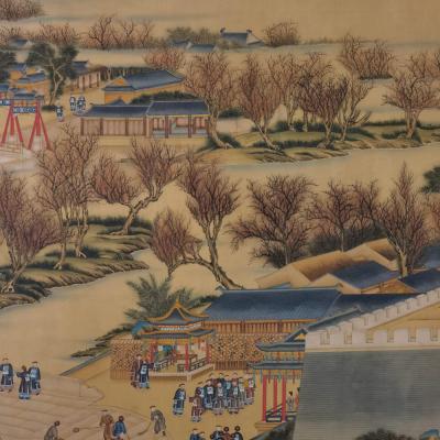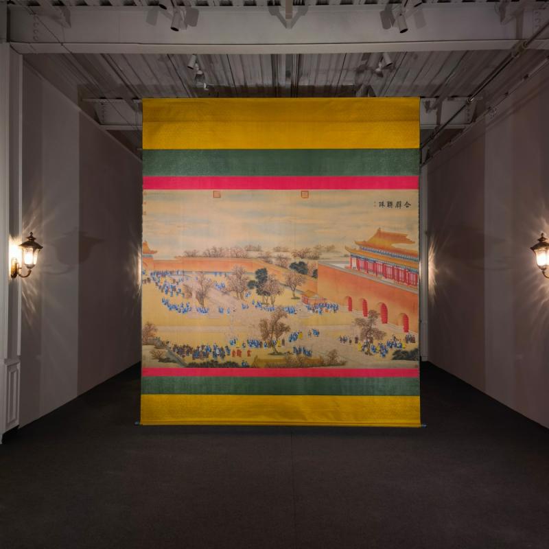 郎世宁巨幅绢本《胪欢荟景万国来朝贺寿圖》,乾隆二十六年辛巳,恭逢崇庆慈圣皇太后七旬万寿。乾隆皇帝敕西洋画臣郎世宁恭制胪欢荟景图,胪列祥瑞,用彰懿德。原装黄花梨大木盒保存完好,极品中极品!单幅尺寸:353cmx300cm