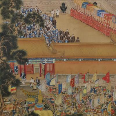 郎世宁《胪欢荟景万国来朝贺寿圖》
