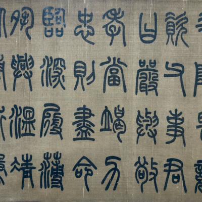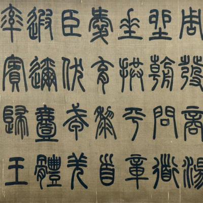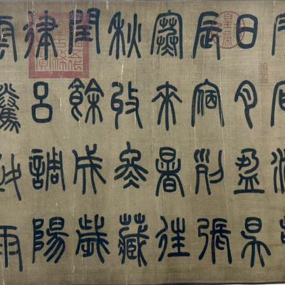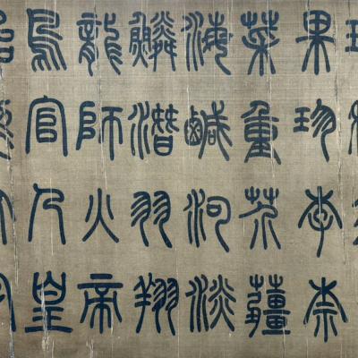 唐太宗,李世民绢本(篆书)书法长卷 画芯尺寸37cmX1368cm 提拔加画芯尺寸37cmX1754cm