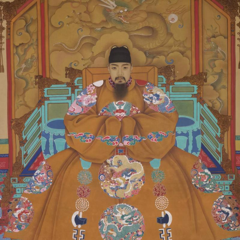记载:崇祯三年(公元1630年)明朝末代皇帝朱由检曾下旨绘历代明君贤臣图,并将其置于文华、武英两殿。根据台北故宫博物院的馆藏,十三位榜上有名的皇帝分别是: