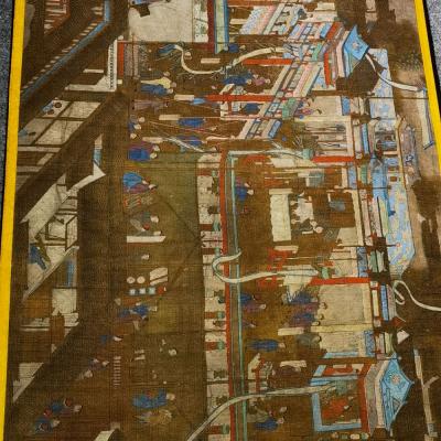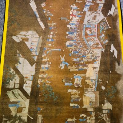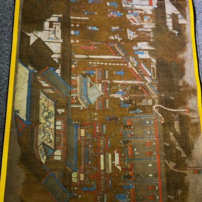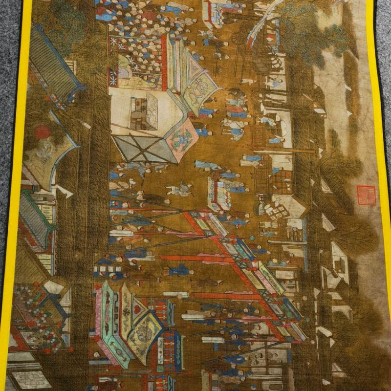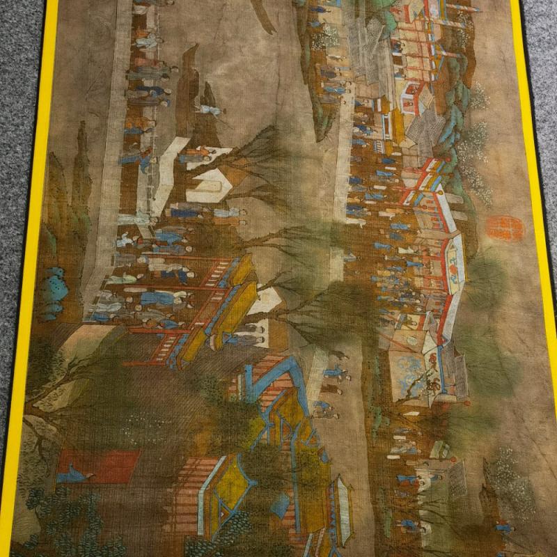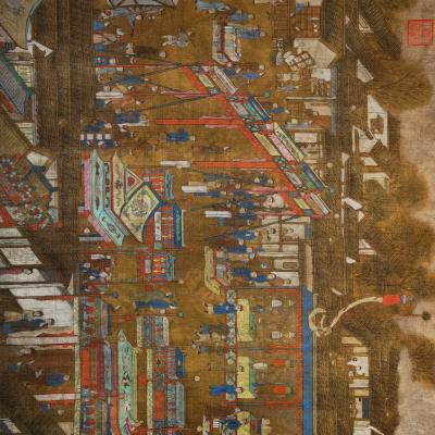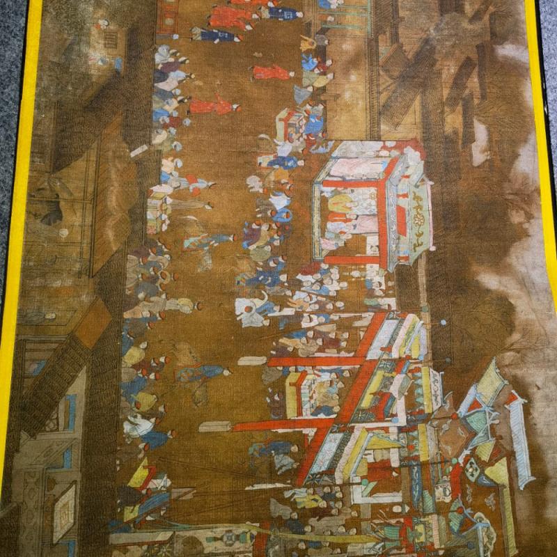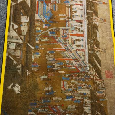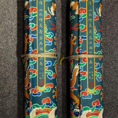 大清内务府裱藏《万寿盛典圖》长卷。康熙五十二年三月十八日康熙皇帝六旬正诞天下臣民赴京慶祝。康熙五十六年,冷枚绘制纪实性宫廷典籍《万寿盛典圖》巨幅长卷,记录万寿庆典盛况,画卷自西郊畅春园延伸至故宫神武门,涵盖皇家仪仗、城池建筑、市井百态等场景。