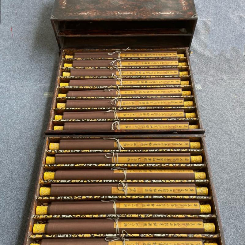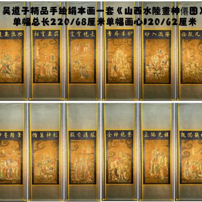 吴道子精品手绘绢本画《山西水陸畫神僊图》一套,【画盒珍藏】(约680年—759年),又名道玄,唐代著名画家,画史尊称画圣。汉族,阳翟(今河南禹州)人。约生于公元680年(永隆元年) ,卒于公元758年(乾元元年)前后。擅佛道、神鬼、人物、山水、鸟兽、草木、楼阁等,尤精于佛道、人物,长于壁画创作。保存完好,共12幅,尺寸如图。