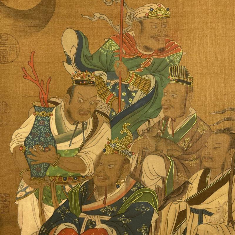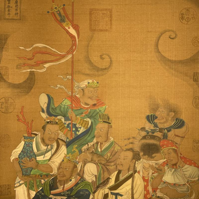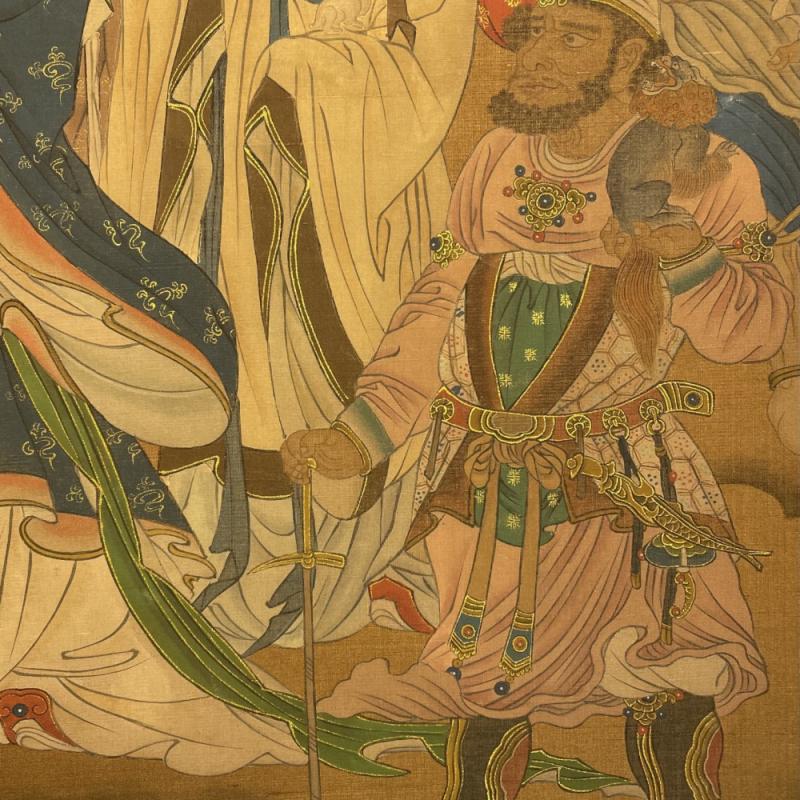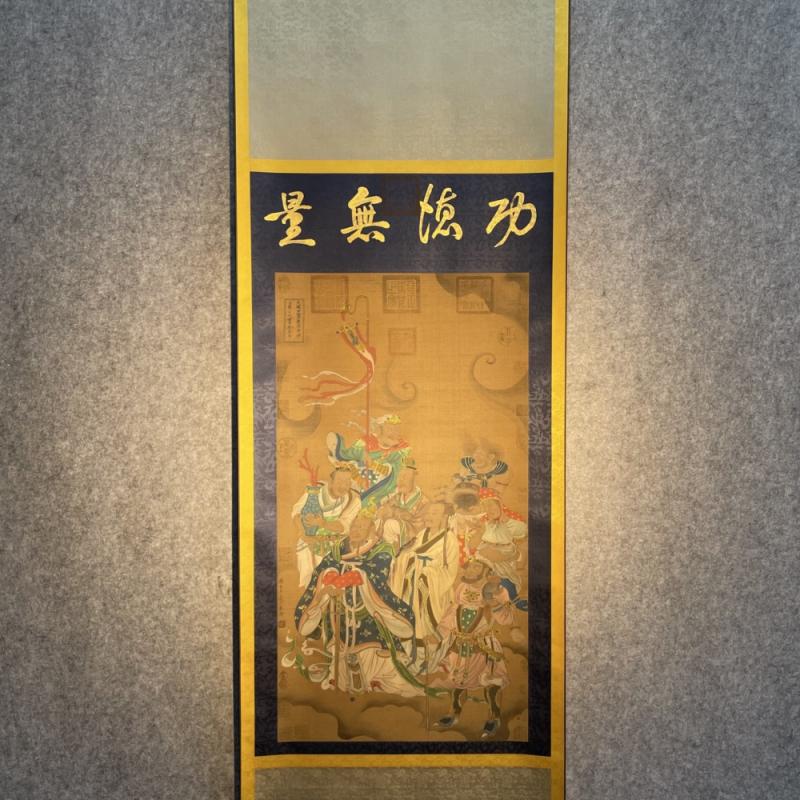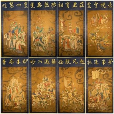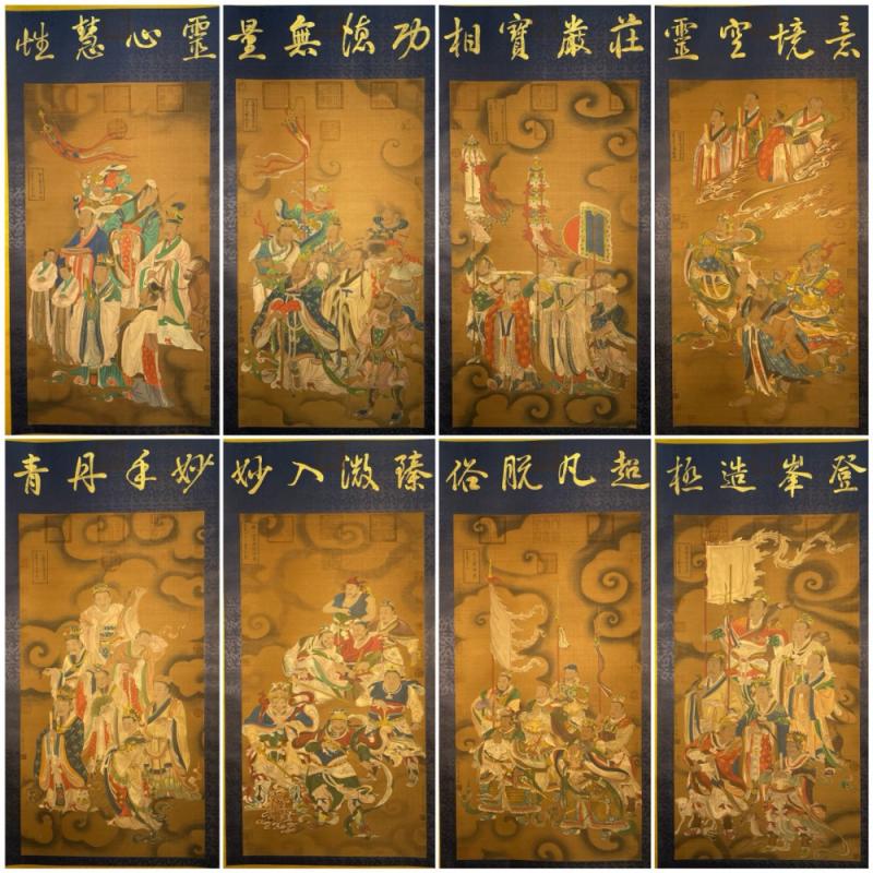 吴道子精品手绘绢本画《山西水陸畫神僊图》一套,【画盒珍藏】