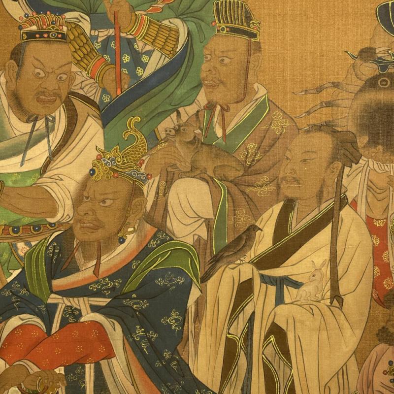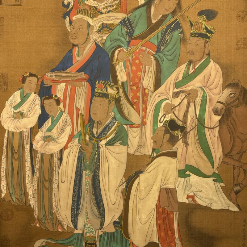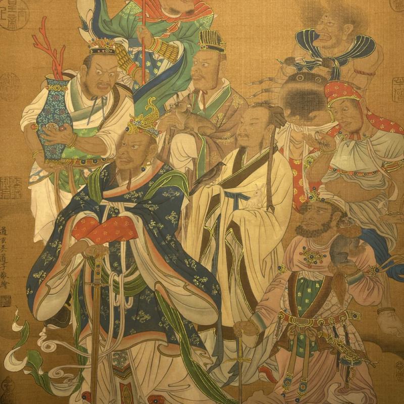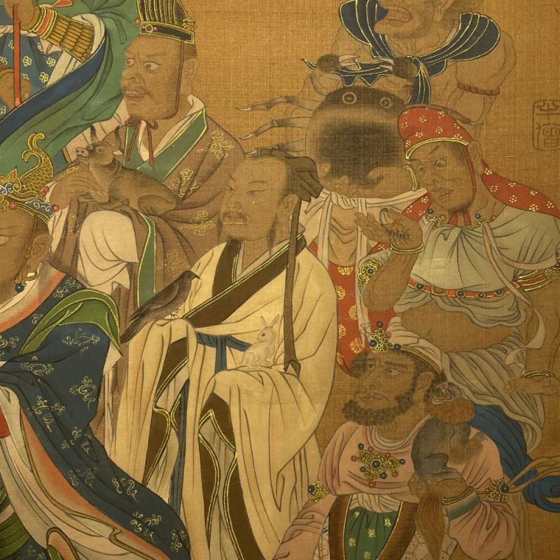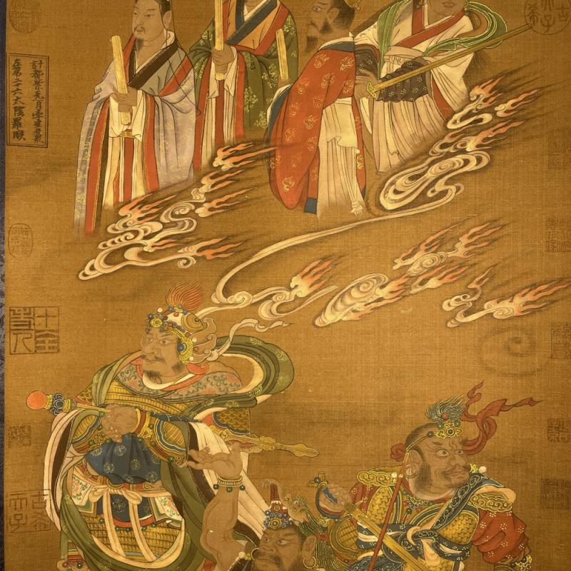 吴道子精品手绘绢本画《山西水陸畫神僊图》一套,【画盒珍藏】
