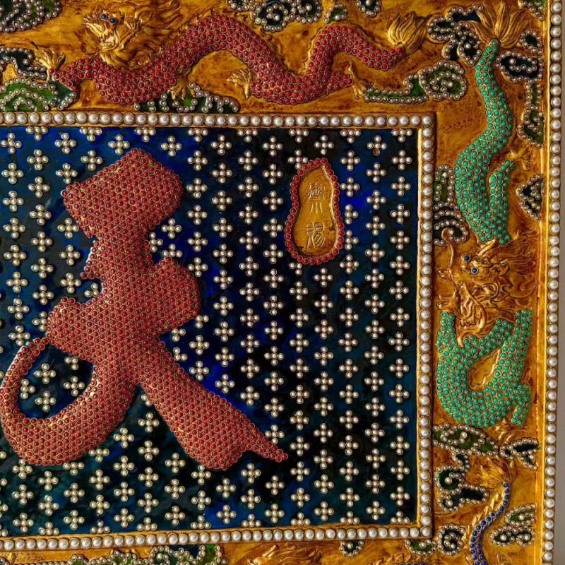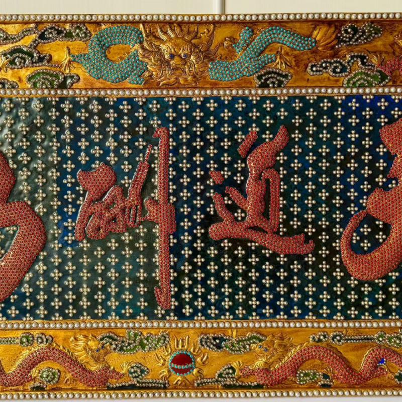 乾隆御制,满镶珍珠宝石《天道酬勤》铜扁,保存完好,工艺精湛,独―无二!收藏极品。尺寸如图