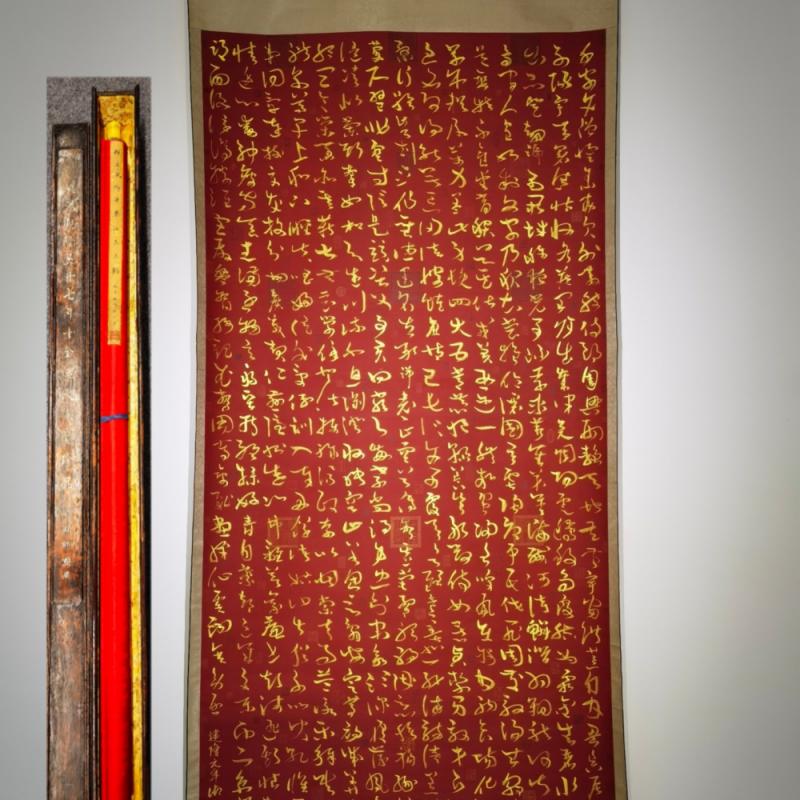 赵匡胤御笔金粉绢本书法立轴。宋太祖赵匡胤(927年3月21日-976年11月14日),小名香孩儿。涿郡人(一说保州),生于洛阳夹马营(今河南省洛阳市瀍河回族区东关)。五代至北宋初年军事家、政治家、战略家,宋朝开国皇帝(960年2月4日-976年11月14日在位)。后周护圣都指挥使赵弘殷(宋宣祖)次子,母为杜氏(昭宪太后)。