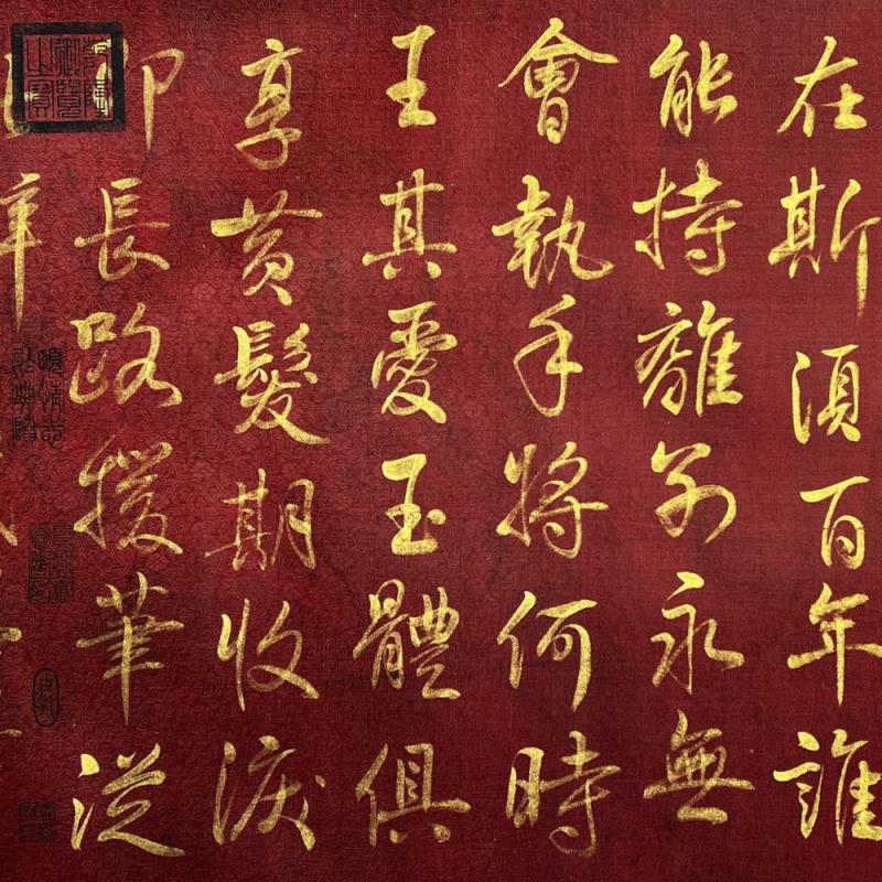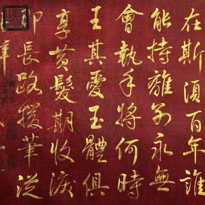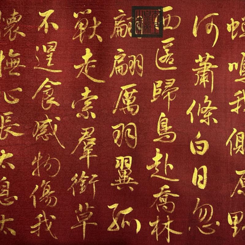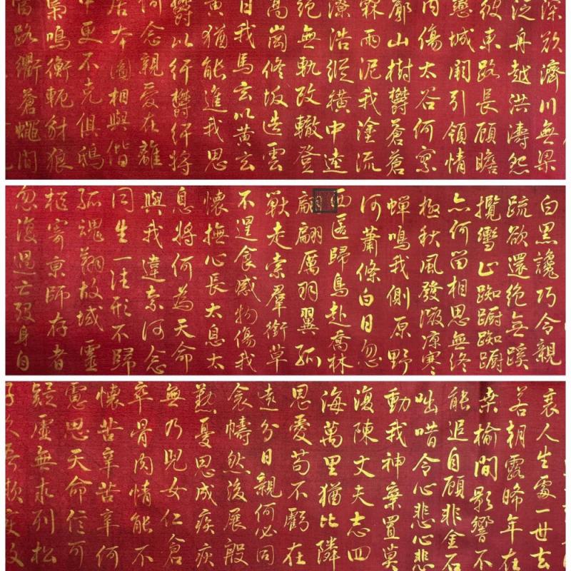 大周-武则天精品绢本金字书法《赠白马王彪并序》长卷