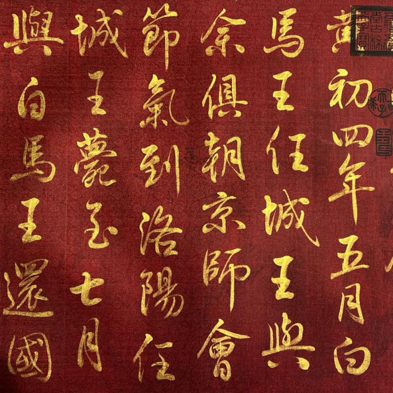 大周-武则天精品绢本金字书法《赠白马王彪并序》长卷,保存良好,尺寸如图。