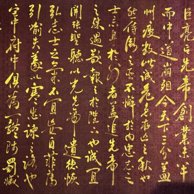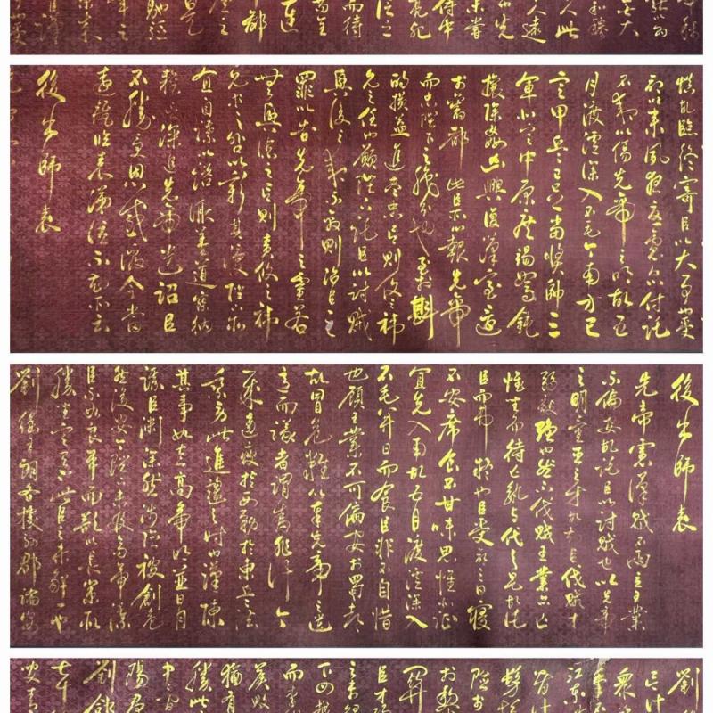 宋代-岳飞精品绢本金字书法前后出师表长卷