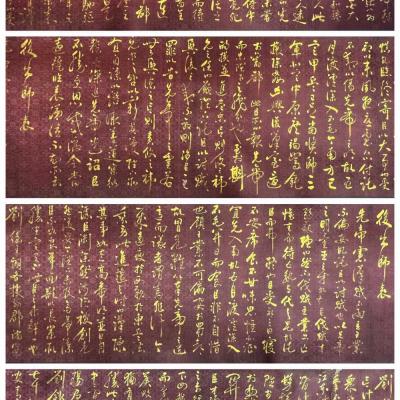 宋代-岳飞精品绢本金字书法前后出师表长卷,保存完好,尺寸如图。