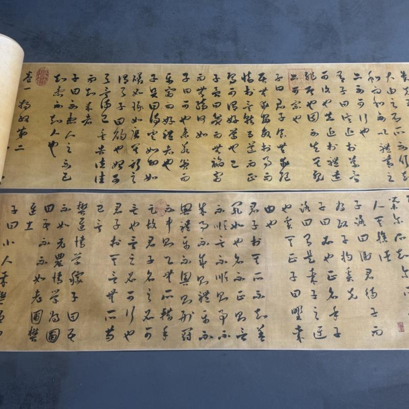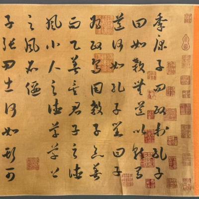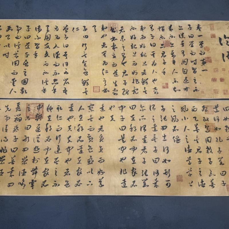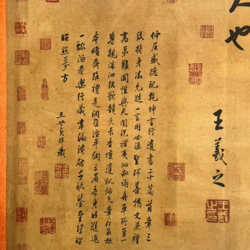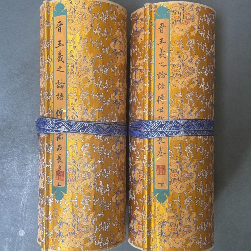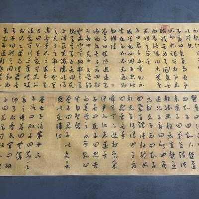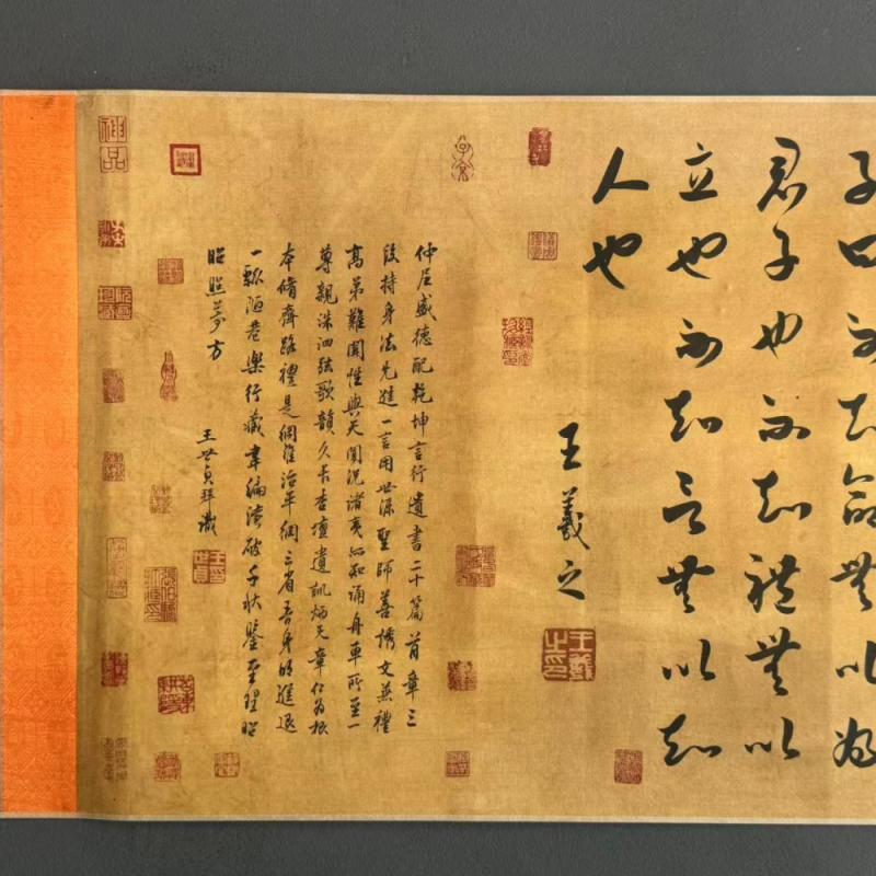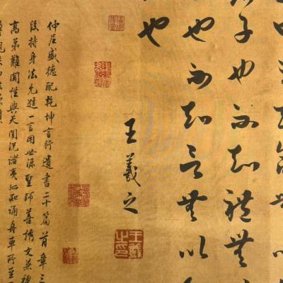 王羲之《论语》绢本书法长卷,保存良好,尺寸如图。