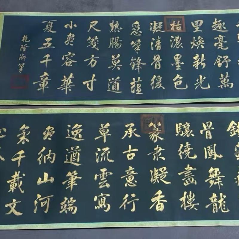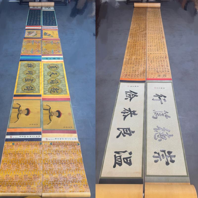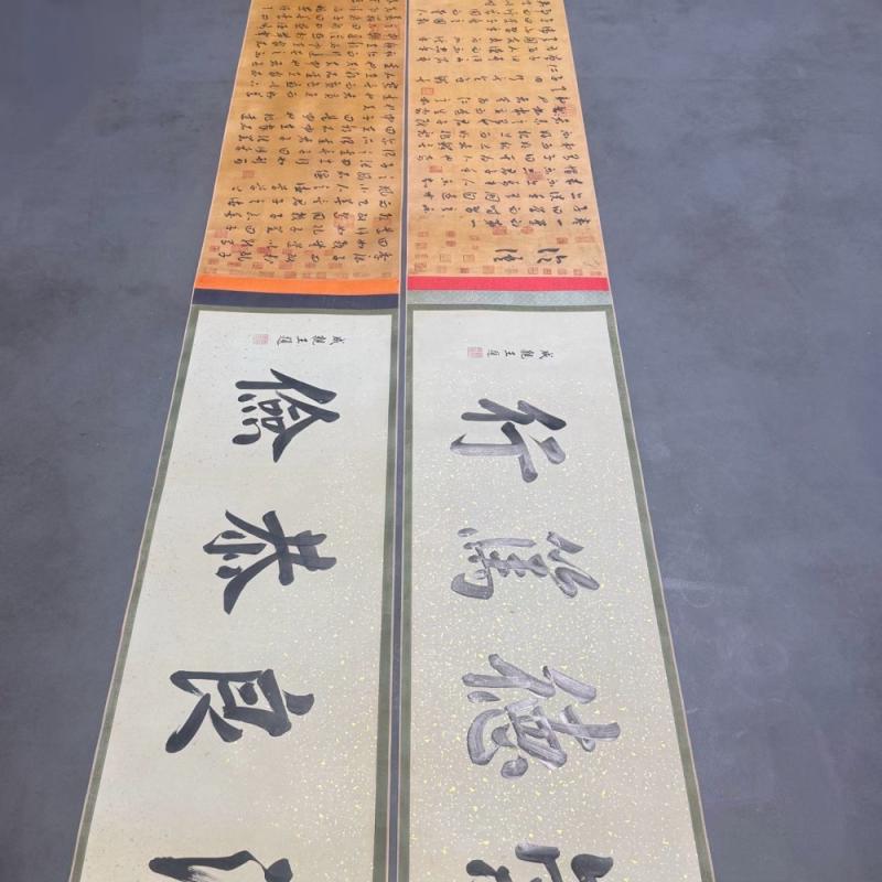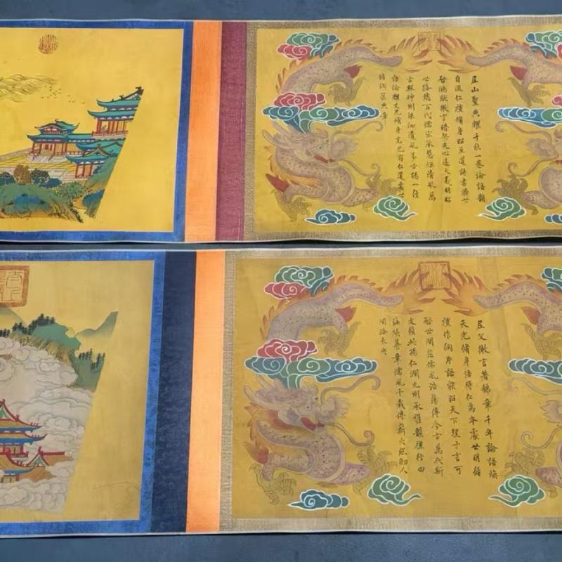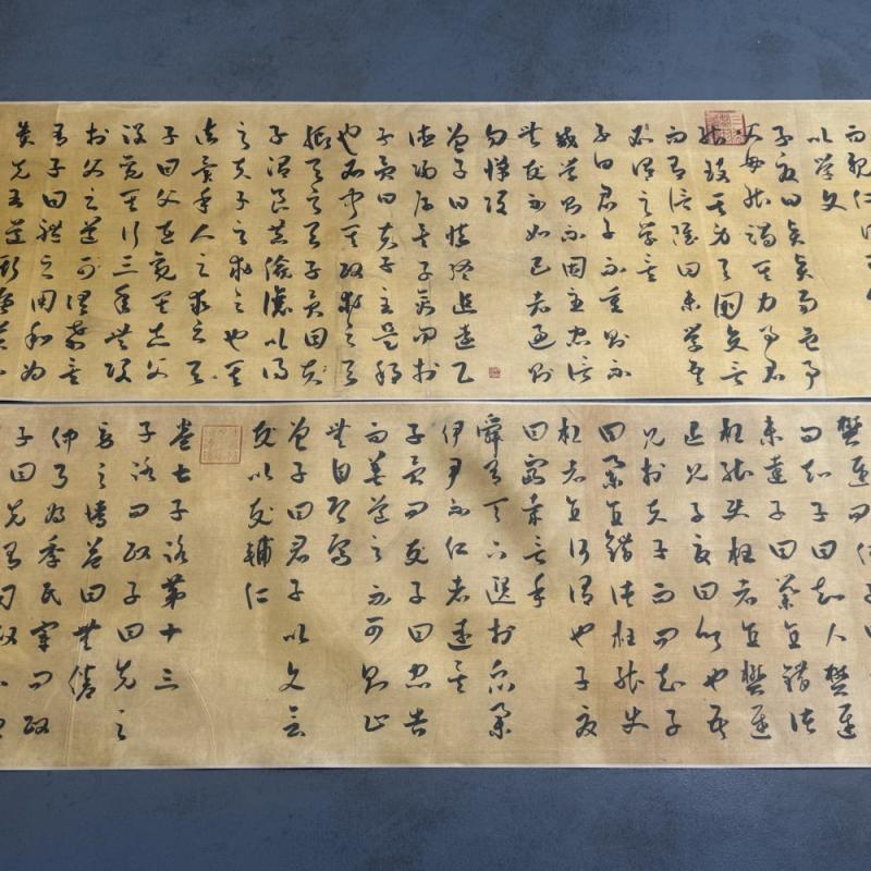 王羲之《论语》绢本书法长卷,保存良好,尺寸如图。