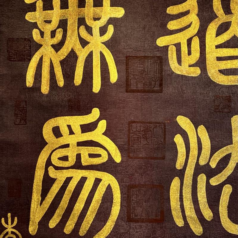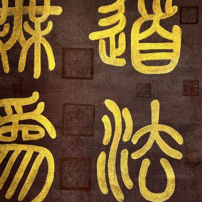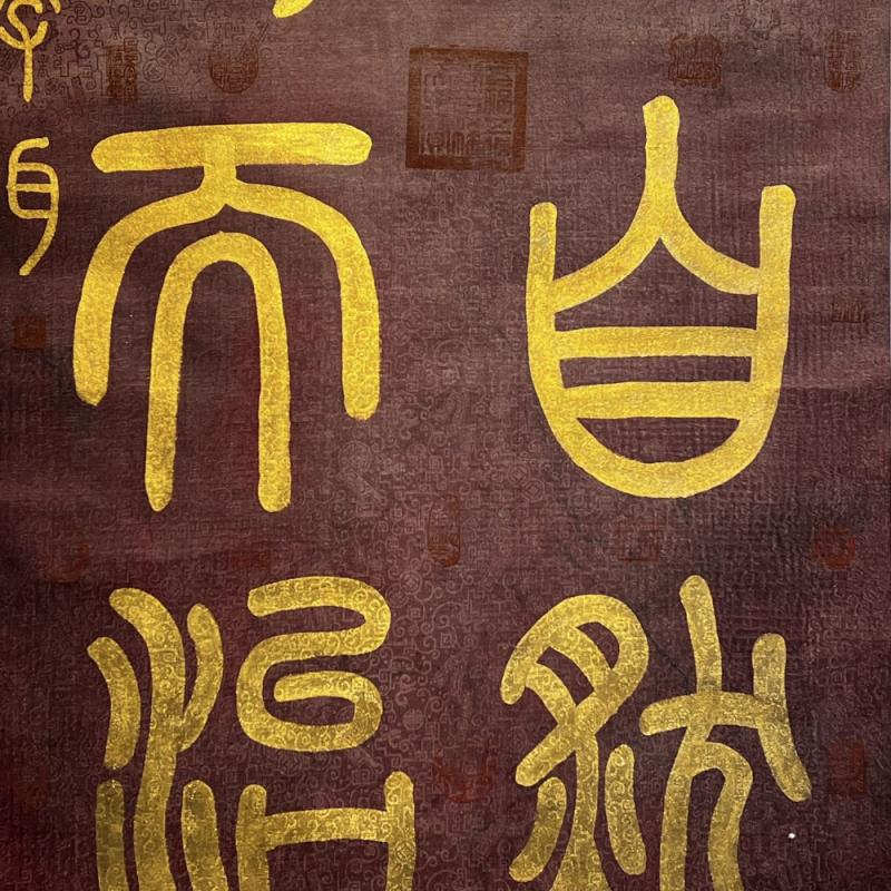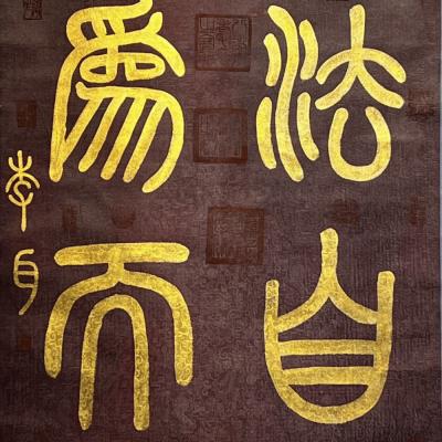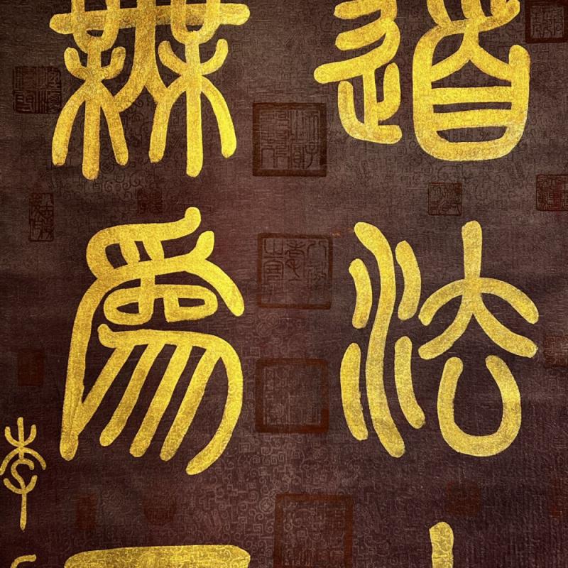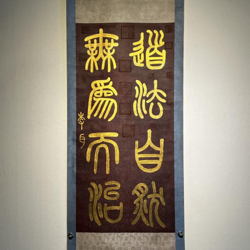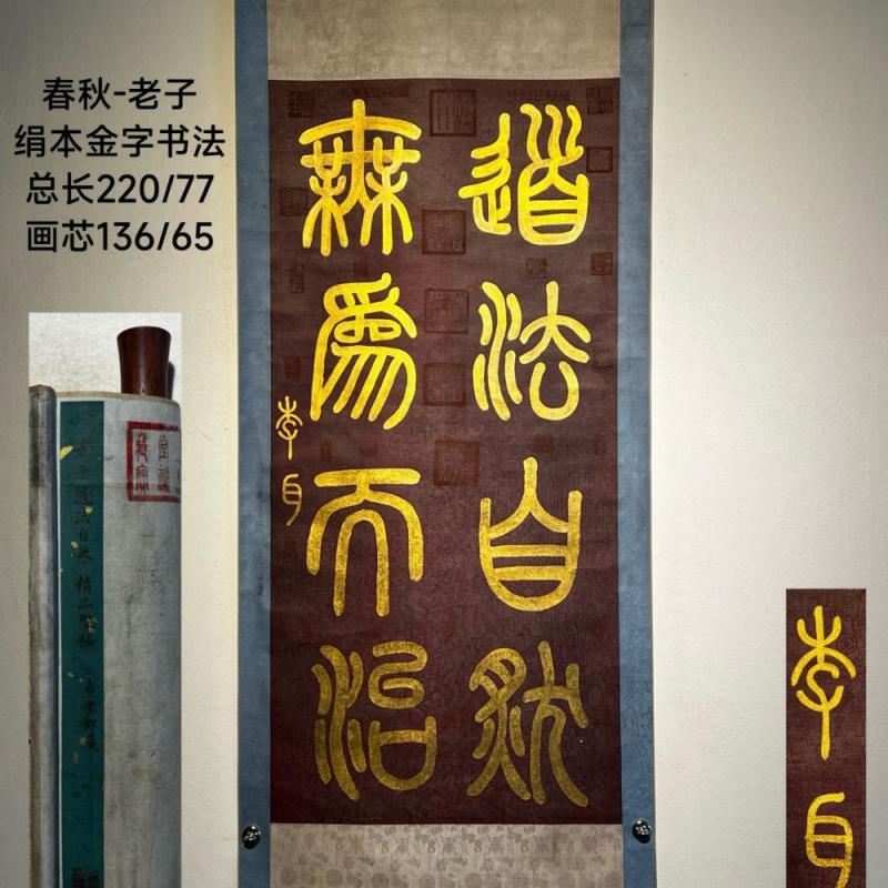 春秋-老子精品金字书法道法自然立轴, 尺寸如图。
