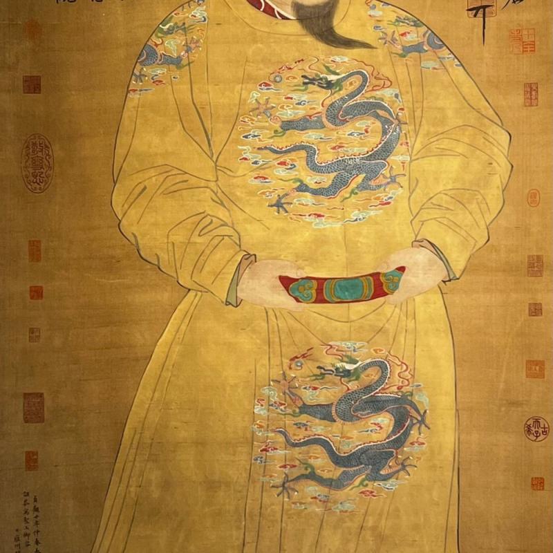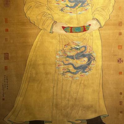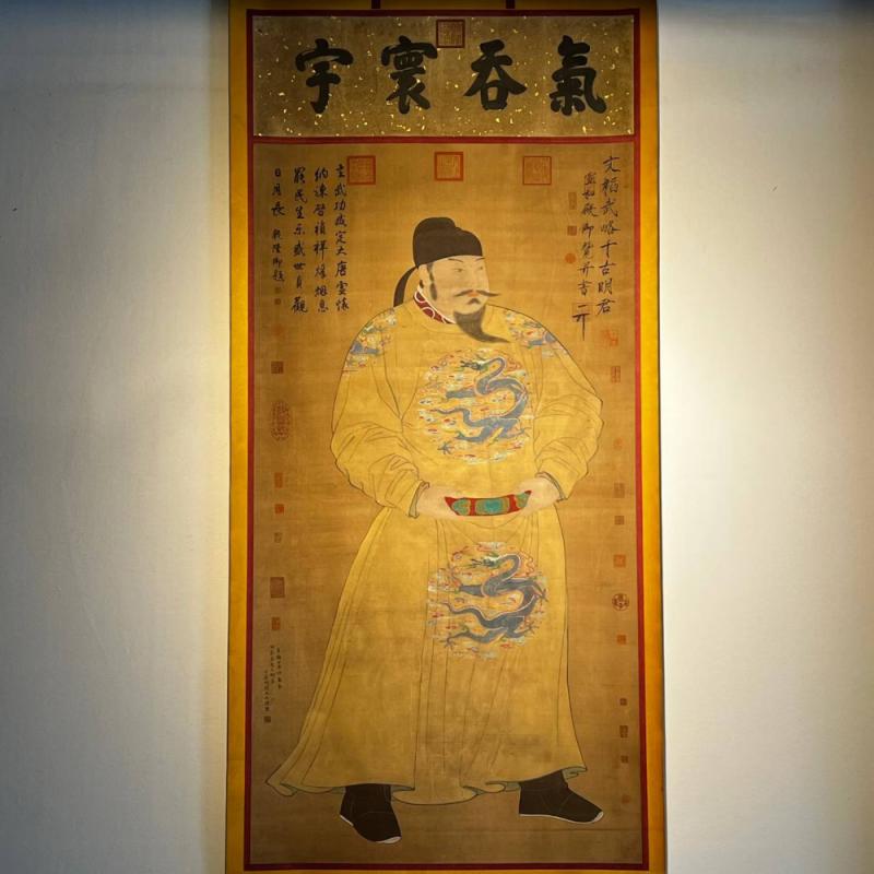 唐代-阎立本精品绢本唐太宗像立轴 阎立本(601年-673年),雍州万年(今陕西西安)人。隋朝殿内少监阎毗之子,唐朝时期政治家、宰相、画家。