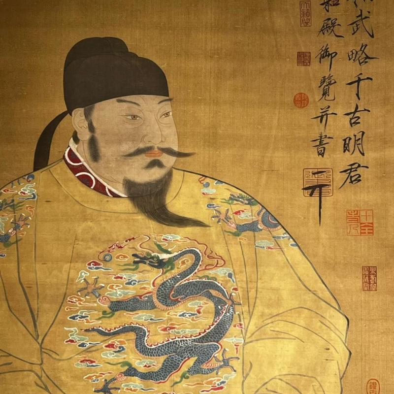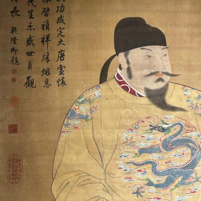 唐代-阎立本精品绢本唐太宗像立轴