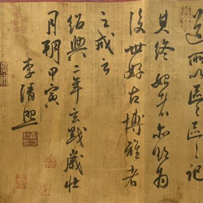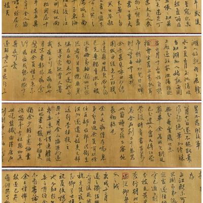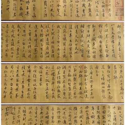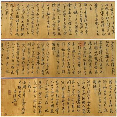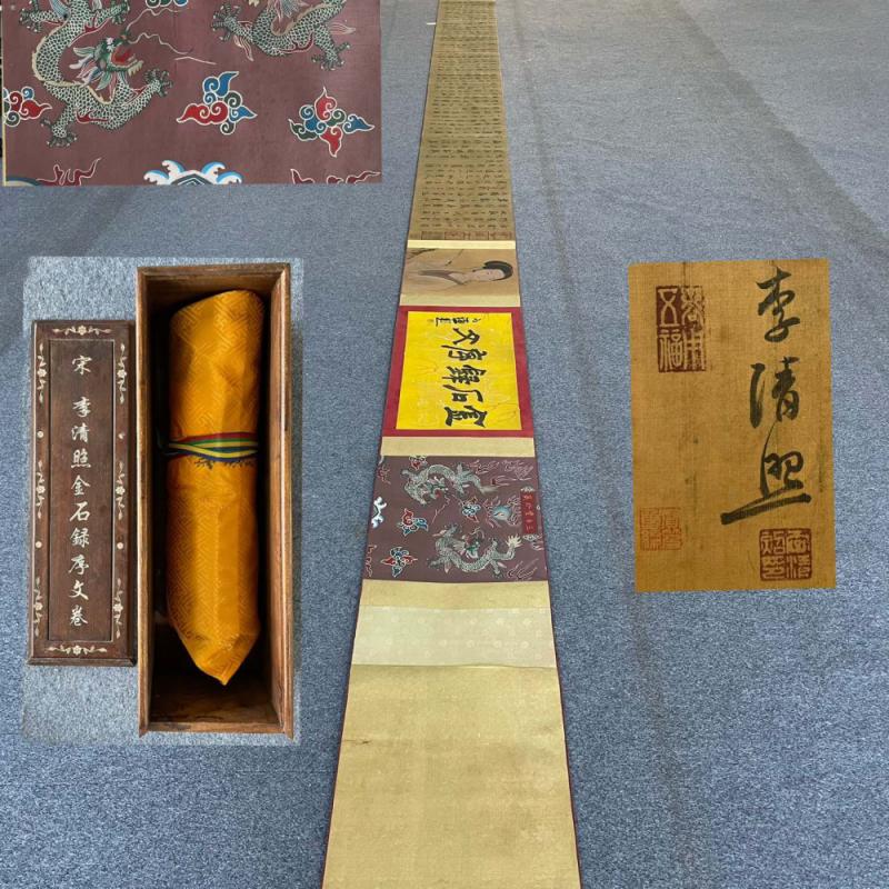 宋代-李清照书法《金石录后序》绢本长卷。保存完好,尺寸如图。