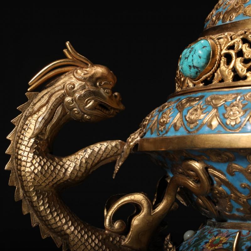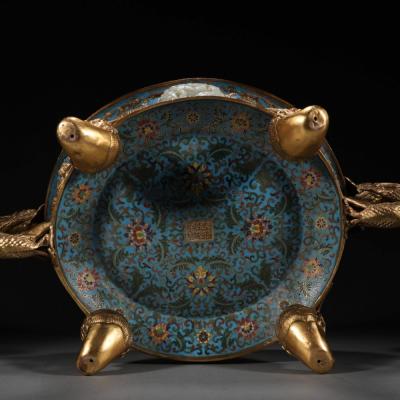 乾隆年制,景泰蓝龙耳嵌玉·八宝纹香炉