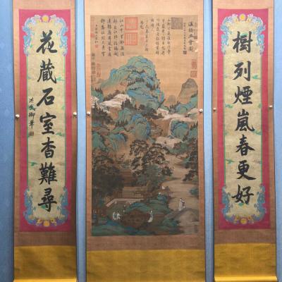 大清三希堂珍藏 苏轼 精品绢本:溪桥幽會图